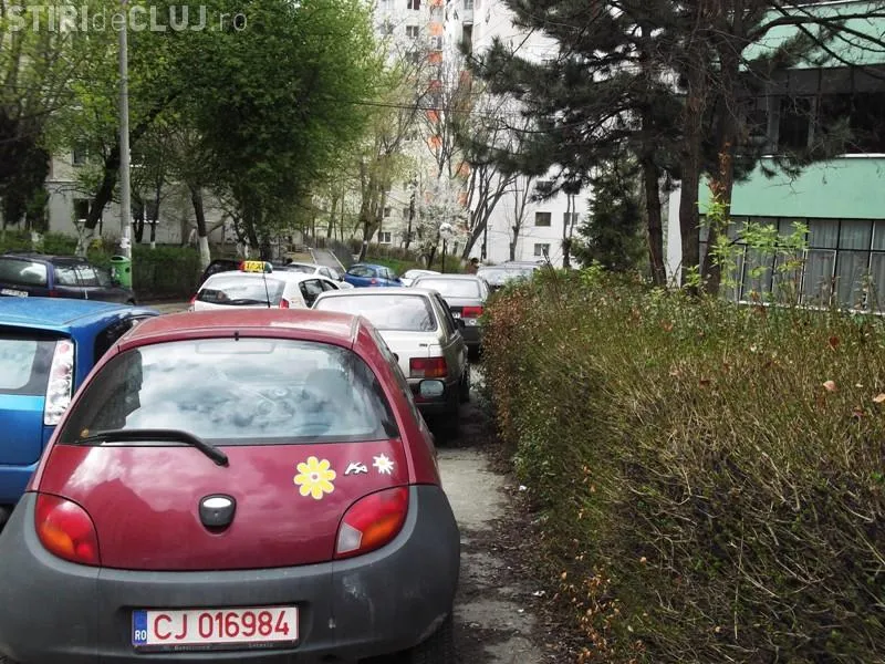"Strada Mehedinti din Cluj-Napoca este locul in care soferii fac schimb cu pietonii: trotuarele au fost transformate in parcari, iar pietonii sunt nevoiti, in multe cazuri, sa circule pe carosabil.