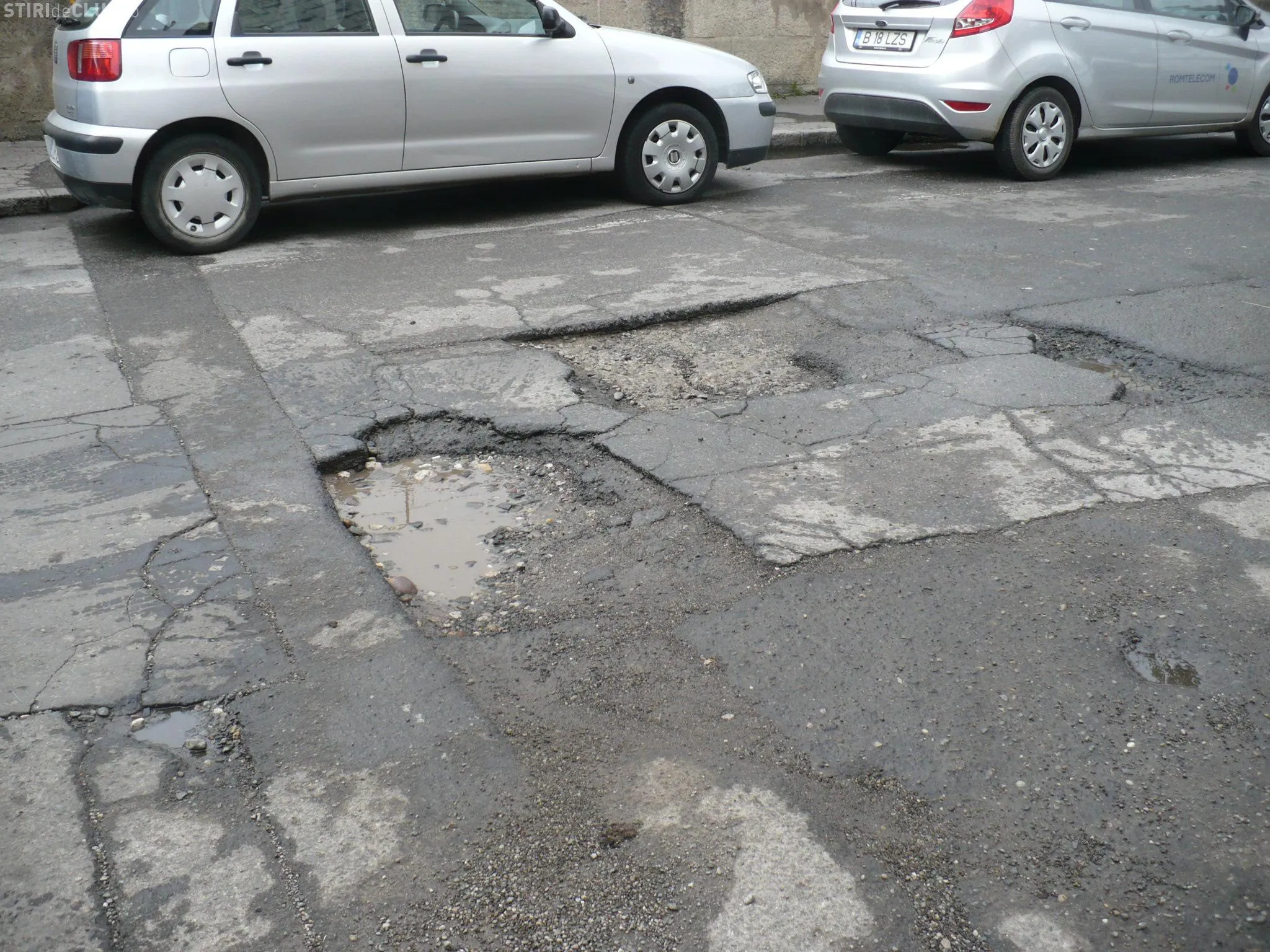 Strada Octavian Petrovici, din centrul orasului, plina de gropi ca dupa bombardament