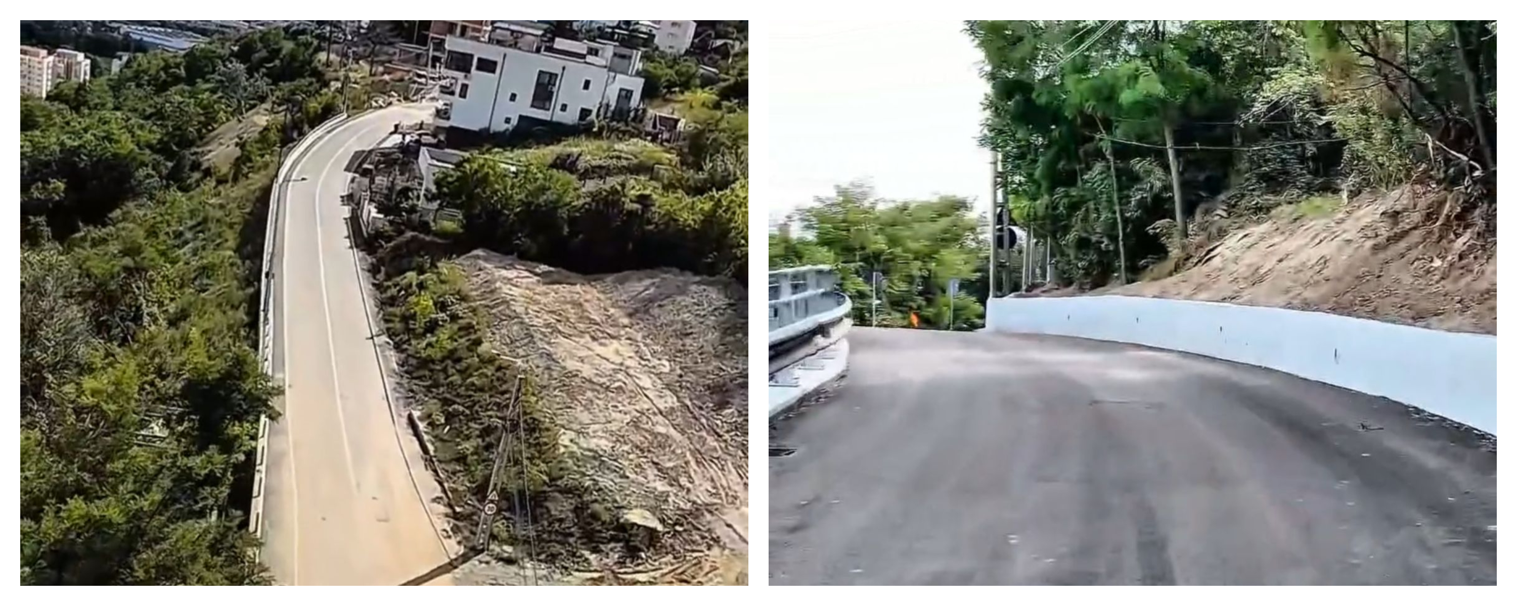 - Realizarea a 40 de piloți forați pe o lungime de 60 de metri pentru a stabiliza versantul;
