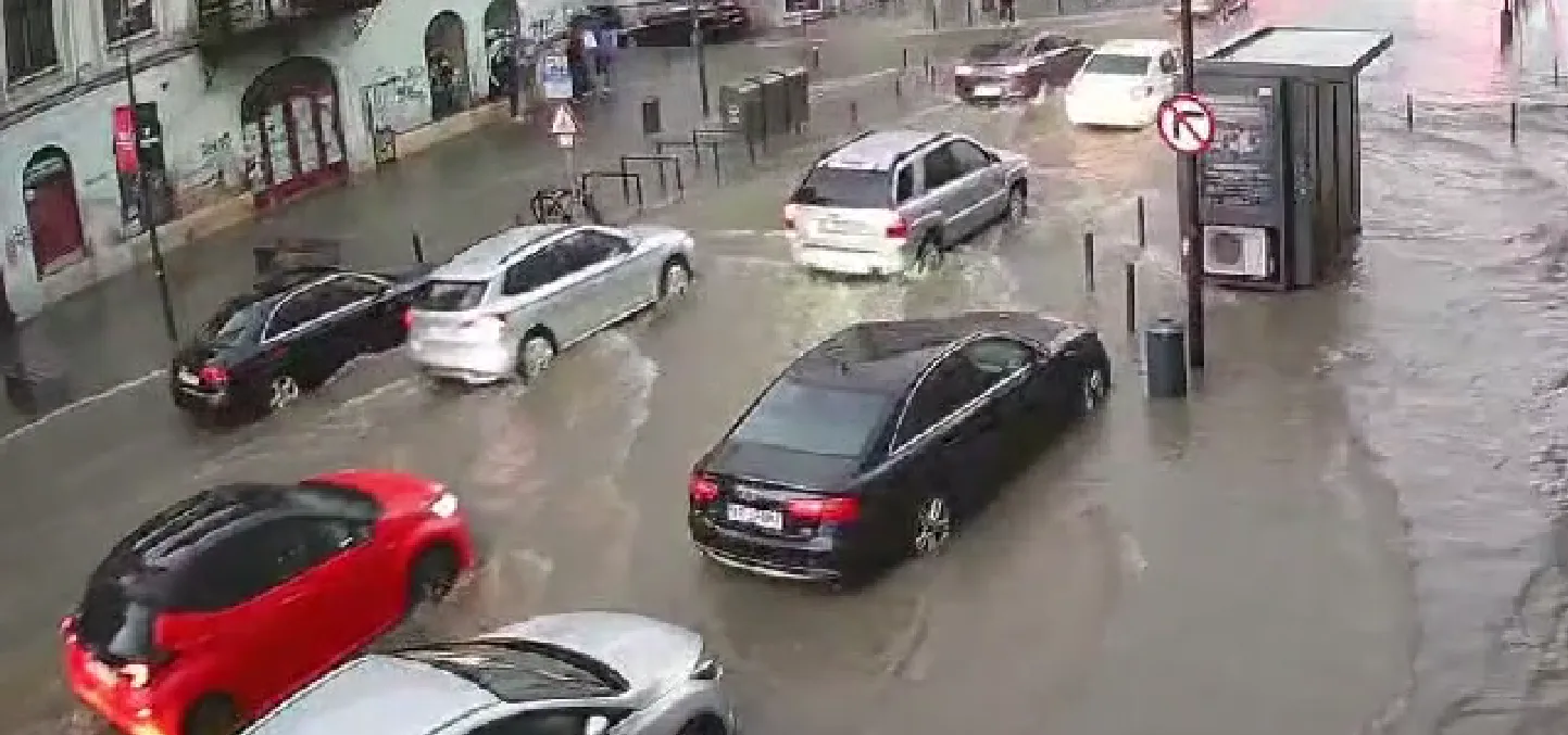 “Ștrand” pentru mașini pe un bulevard din Cluj după furtuna de ieri. Bulevardul Eroilor, complet sub ape - VIDEO
