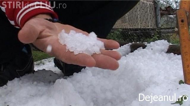 Strat de 30 de centimetri de grindină într-un sat clujean VIDEO