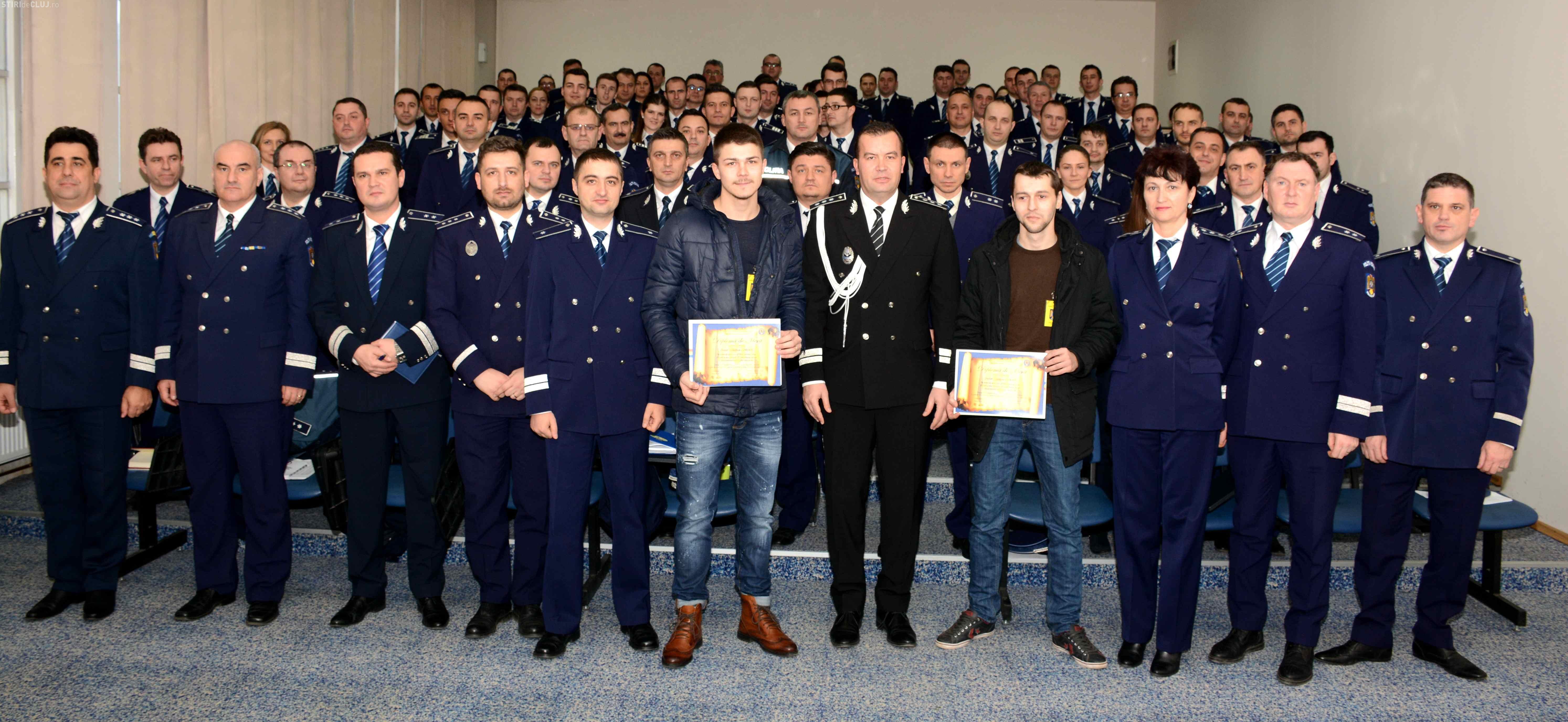 Inspectoratul de Poliție Județean Cluj a premiat, vineri, doi tineri cu spirit civic, aceștia fiind invitați la sediul Poliției.