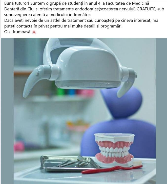 Studenții de la Facultatea de Medicină Dentară de la UMF Cluj, anul IV, oferă GRATUIT următoarele servicii: