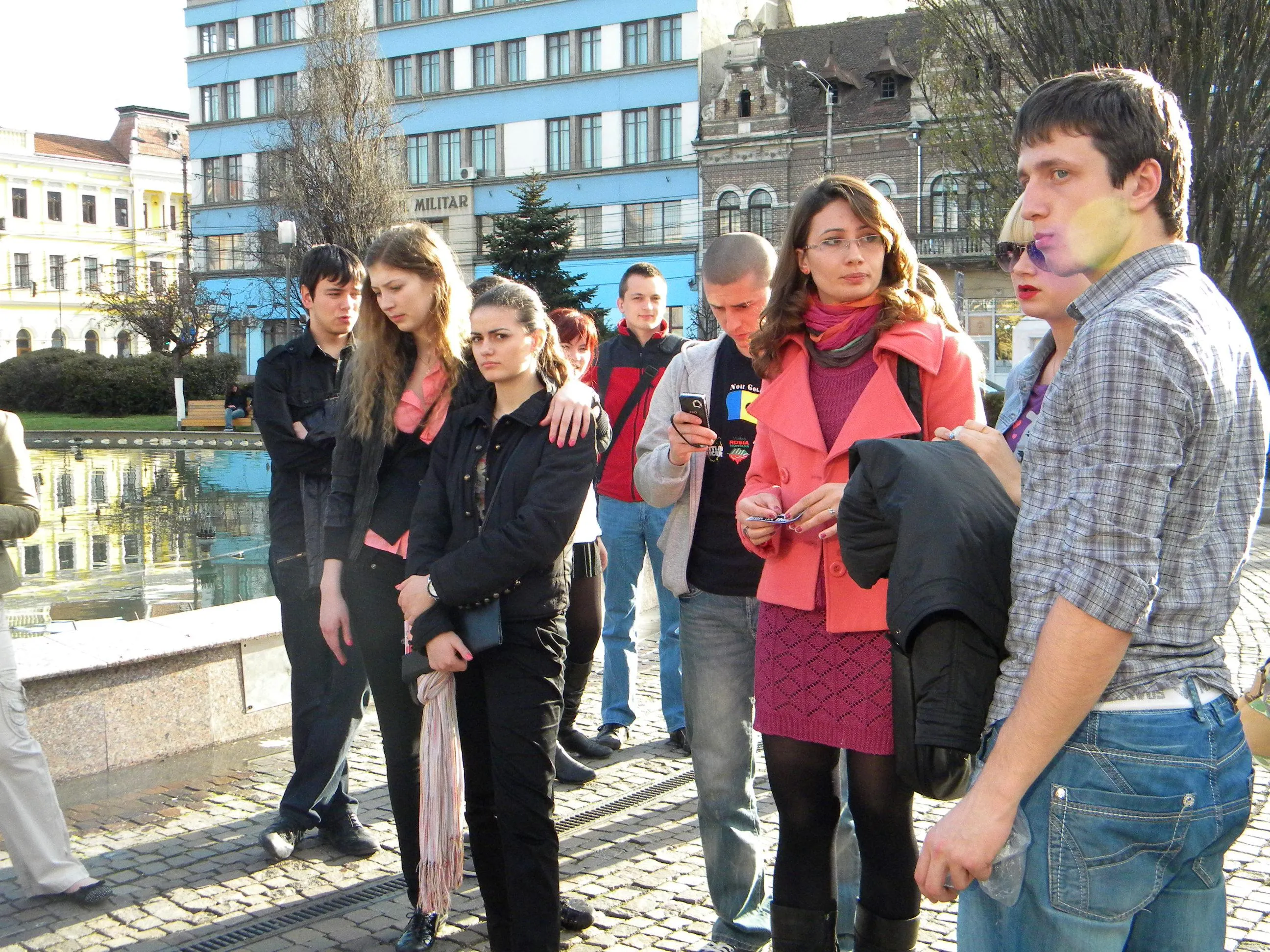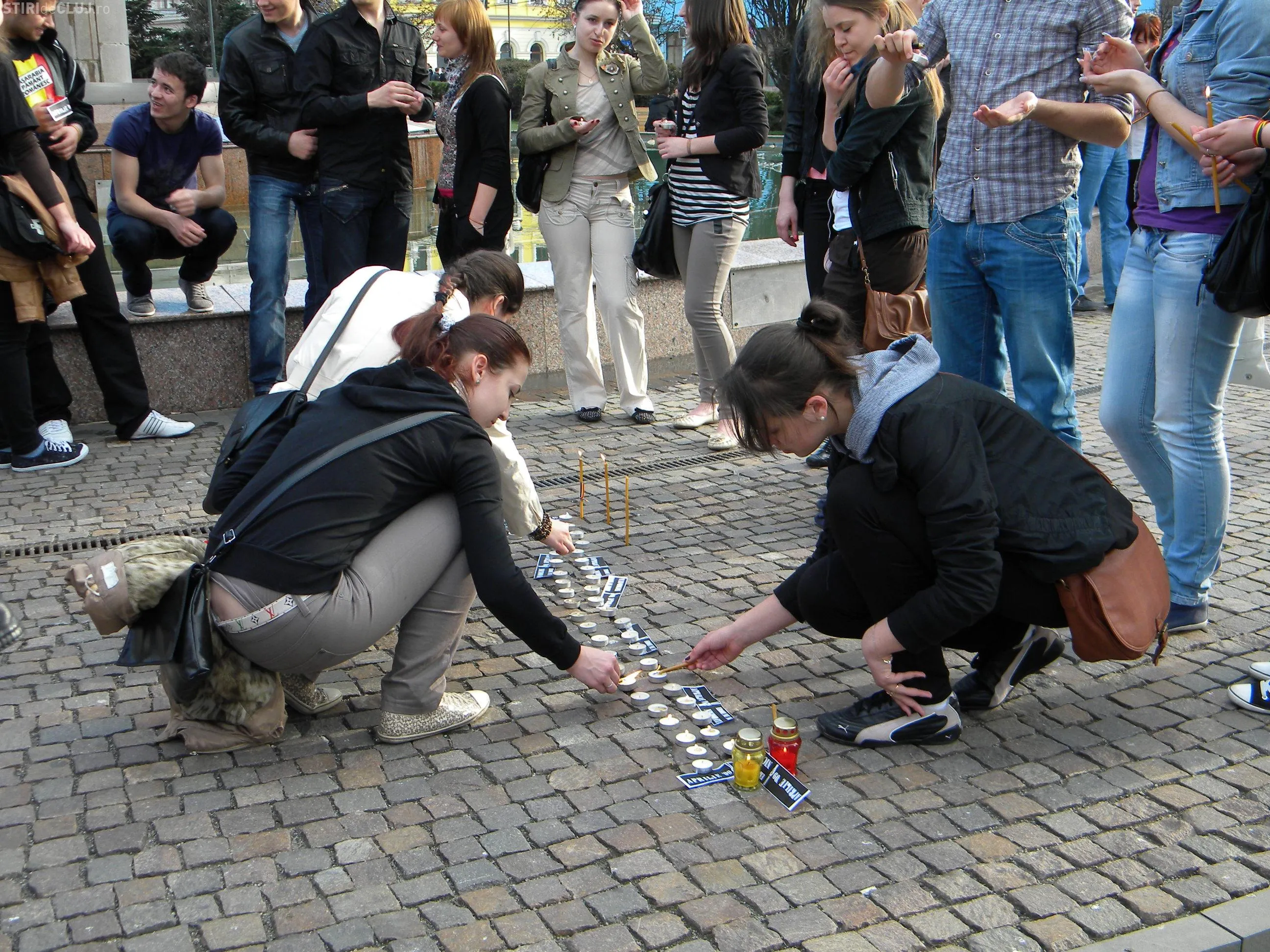 Aproximativ 50 de studenti basarabeni au comemorat in Piata Avram Iancu victimele revoltei in 7 aprilie 2009, din Republica Moldova. Trei peroane au murit si 500 au fost ranite in timpul protestelor de acum 2 ani.