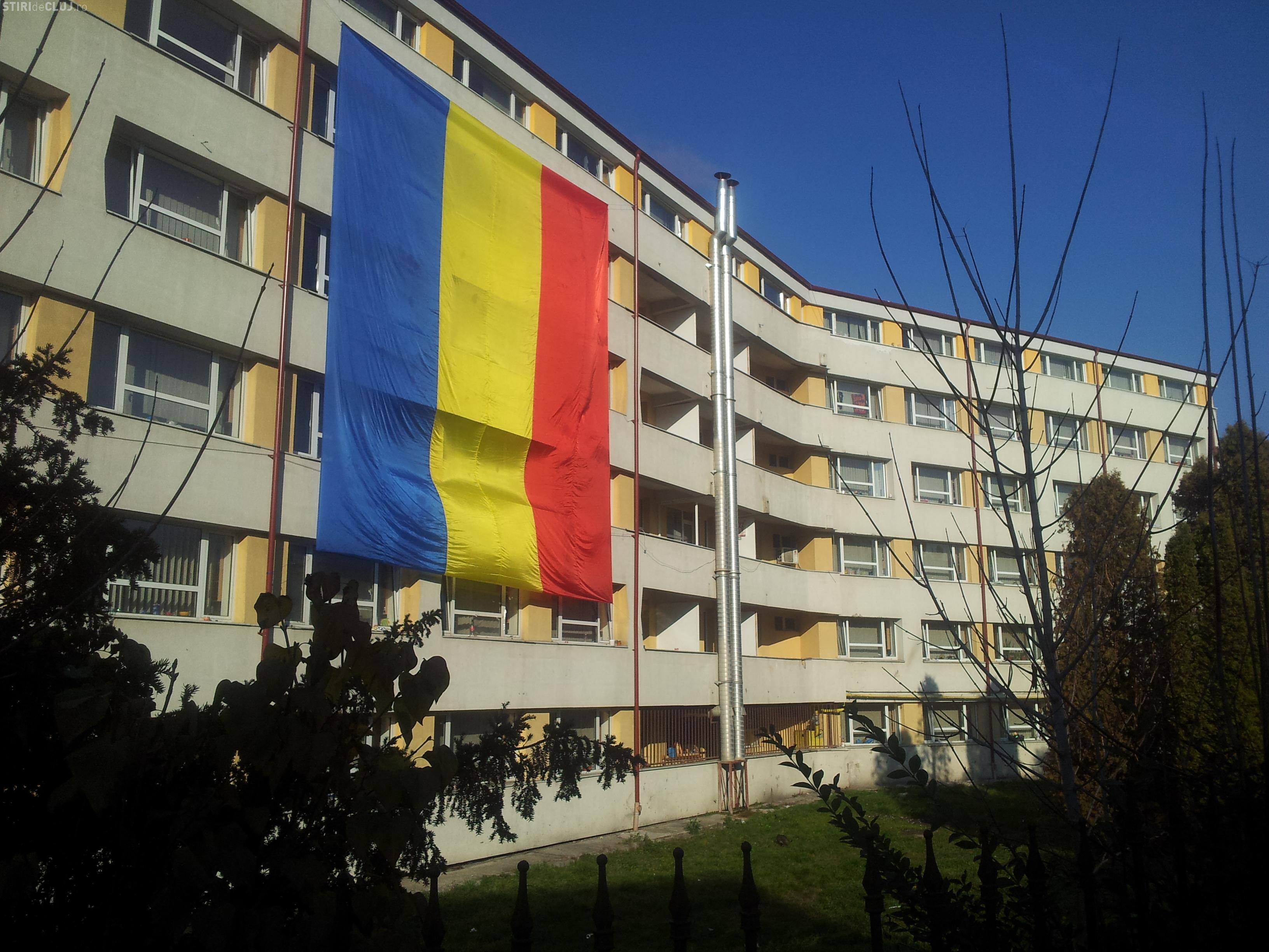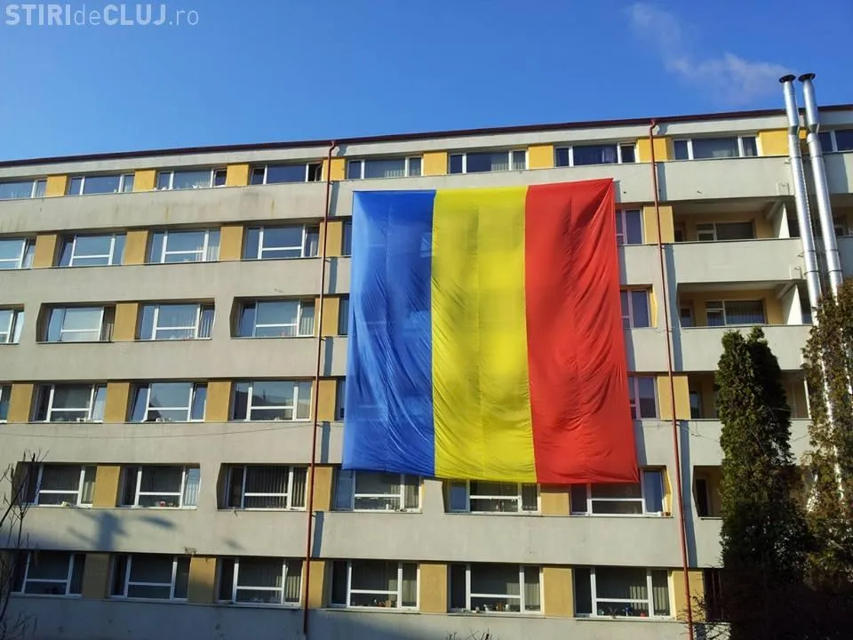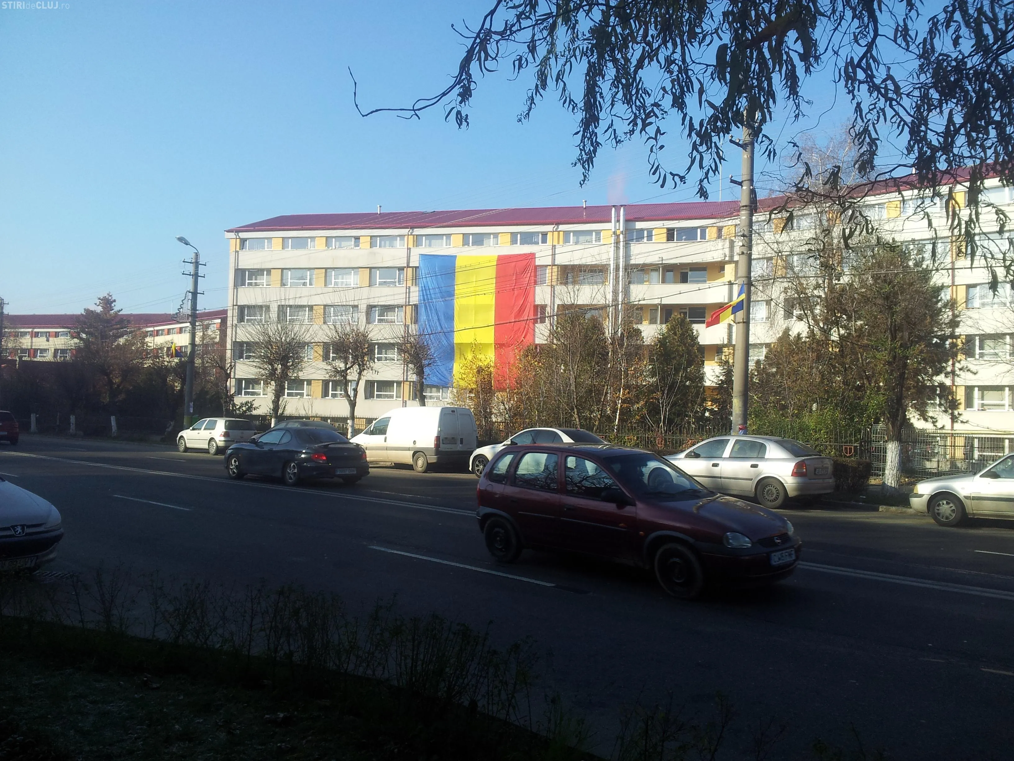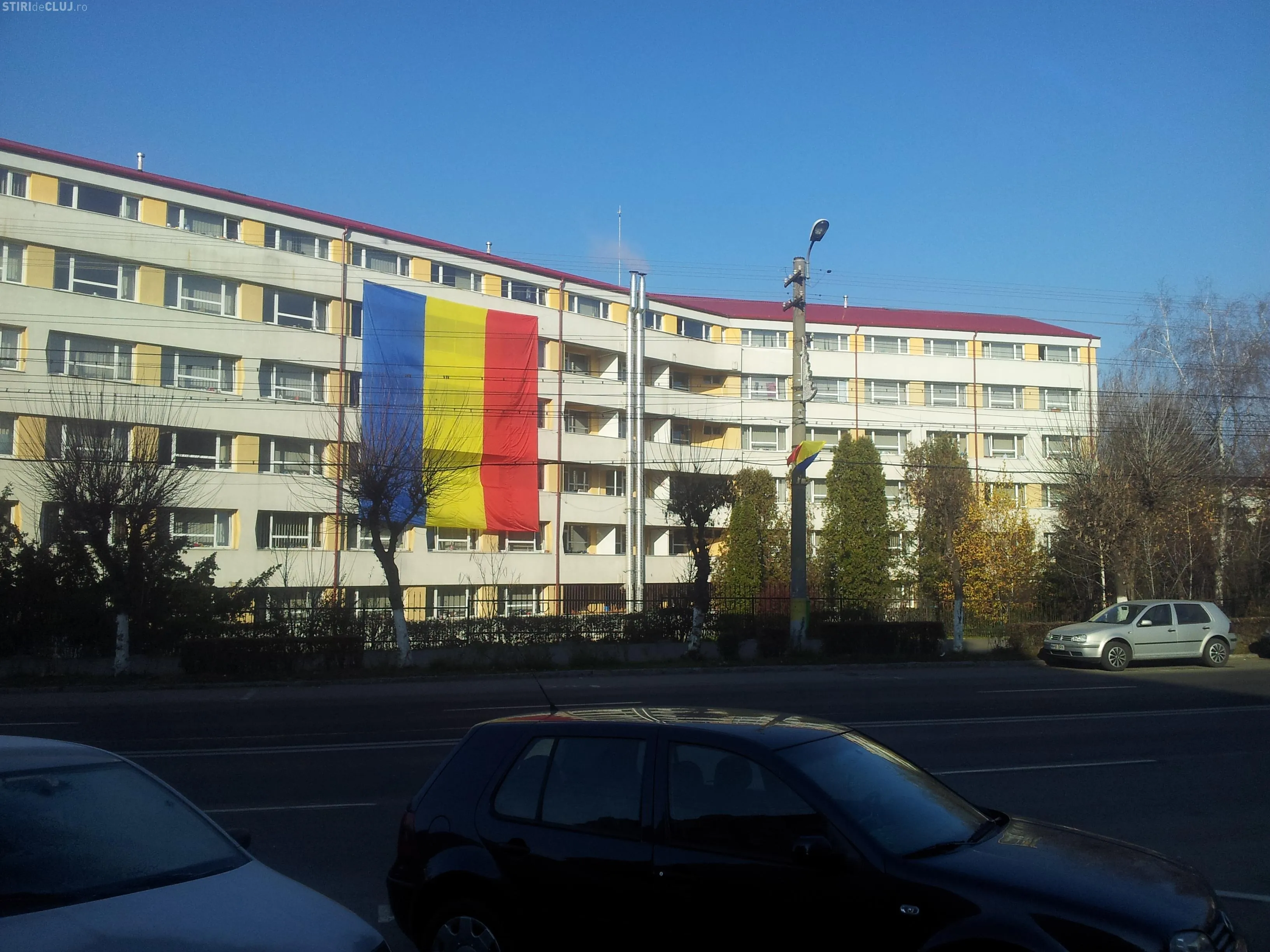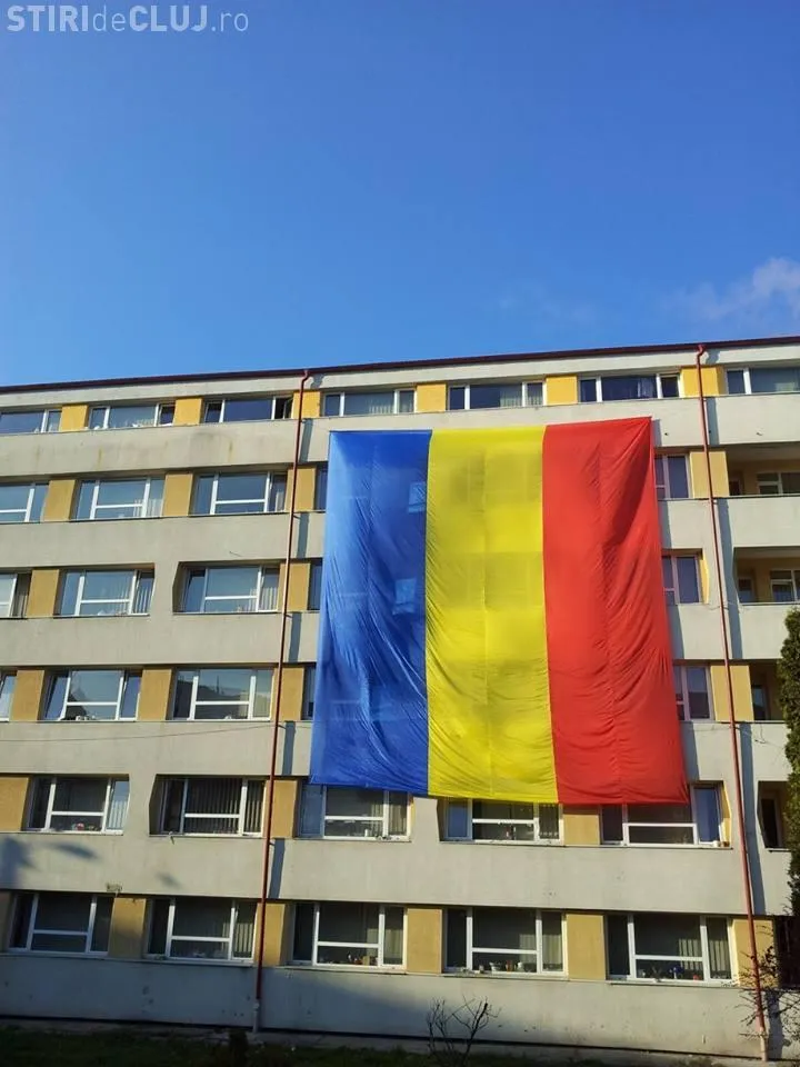 Studenții din Cluj au arborat un TRICOLOR URIAȘ pe căminul 3 din Observator - FOTO