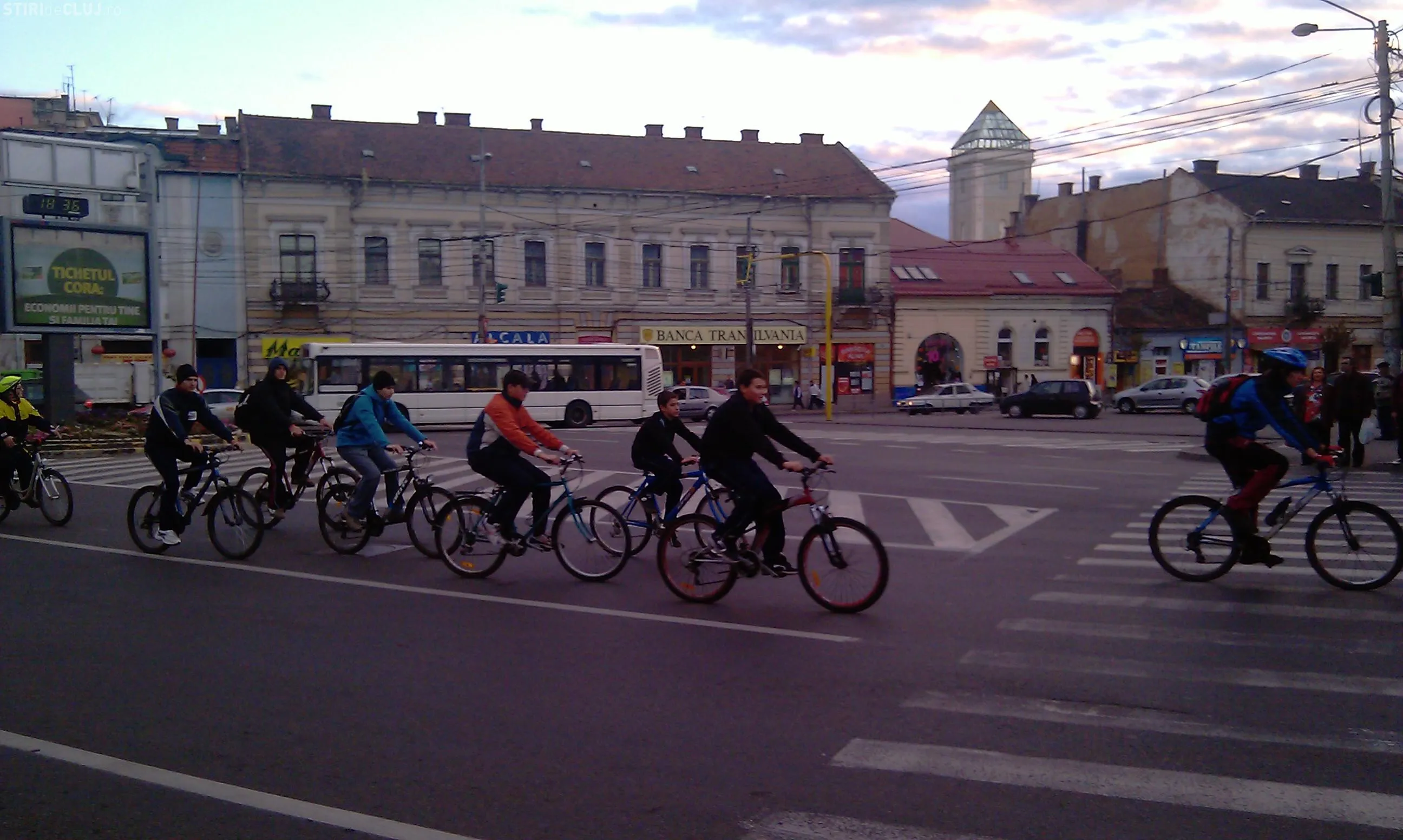 Studentii si absolventii facultatilor din Cluj au iesit miercuri cu bicicleta prin oras, in cadrul proiectului "Studentie, te iubesc!", initiat de Asociatia pentru Performanta si Cultura.