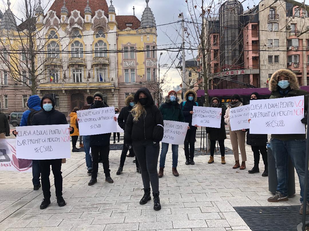 Astăzi, 12 februarie 2021, începând cu ora 10:00, Organizația Studenților din Universitatea Babeș-Bolyai (OSUBB) împreună cu organizațiile studențești și Consiliul Studenților din Cluj-Napoca, au continuat demersurile prin care și-au manifestat nemulțumirea și poziția critică privind propunerea de limitare a dreptului studenților de a beneficia de transport feroviar gratuit și lipsa de transparență și comunicare față de studenți, beneficiarii direcți.