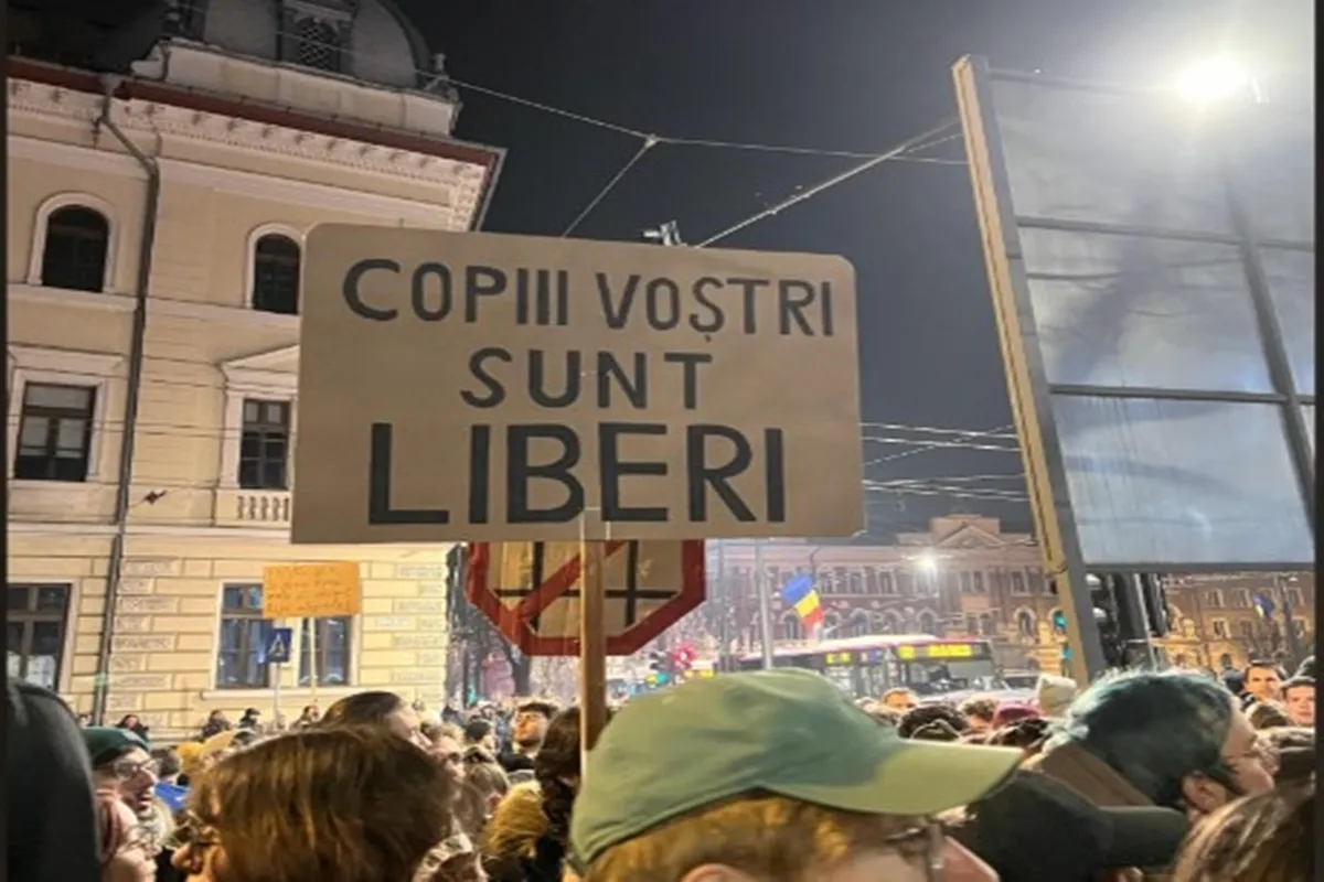 CITEȘTE ȘI: Sute de tineri au protestat în fața Prefecturii Cluj pentru democrație: „Iubirea de țară nu e legionară” VIDEO