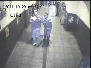 Studentul batut de politisti a iesit din Janis Stuf nevatamat, cu catuse la mana VIDEO CAMERE DE SUPRAVEGHERE