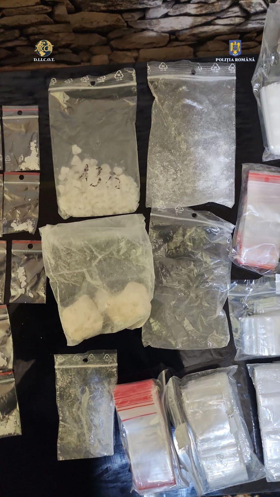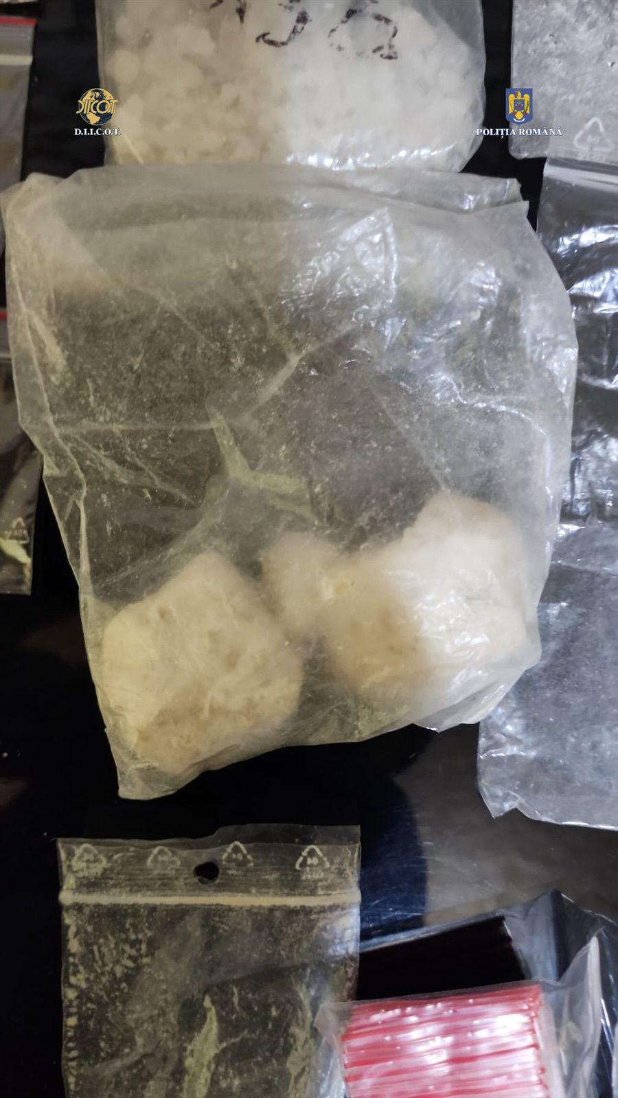 În total, în urma a 3 percheziții, anchetatorii au descoperit: 50 g de 3CMC, 70 g de 2MMC, 21 g de cocaină, dar și obiecte cu urme de droguri și alte probe relevante.
