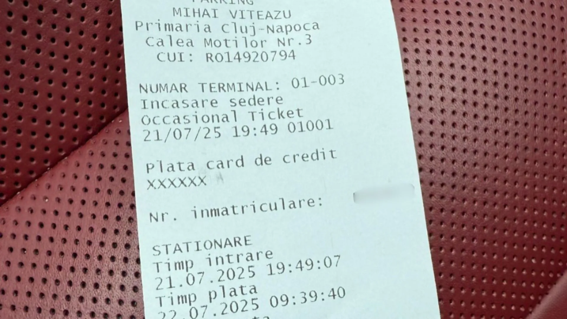 Bonul, emis de parcarea Primăriei Cluj-Napoca, a venit ca o palmă peste față turistului. Acesta a scris un mesaj ironic și revoltător „Tichet de plată parcare Cluj! Nu, nu Dubai, Cluj! Parcarea Primăriei Cluj 13,50 ore pe timp de noapte în cursul săptămânii, 208 lei de plată! Așa încurajează turismul autoritățile. Am plătit 300 lei camera de hotel, dacă știam, o luam înăuntru măcar să facă și un duș!”