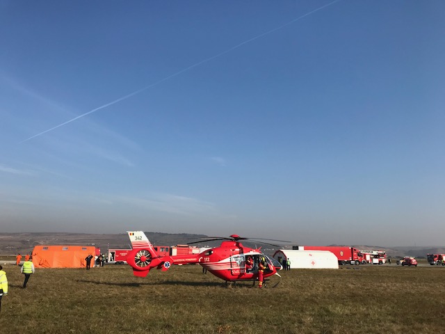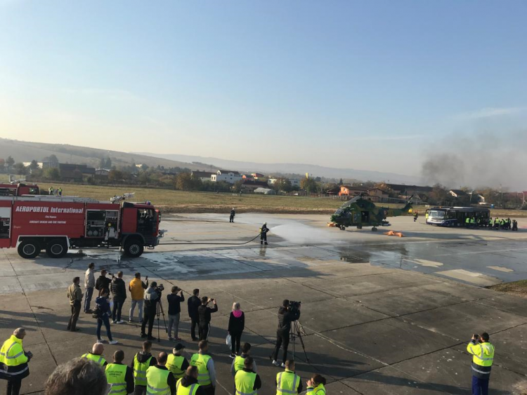 Aeroportul Internațional “Avram Iancu” Cluj a organizat joi, 17 octombrie, un exercițiu de antrenament pentru verificarea aplicabilității ”Planului operațional de intervenție pentru situații de urgență generate de producerea unui accident de aviație civilă pe aeroport”.