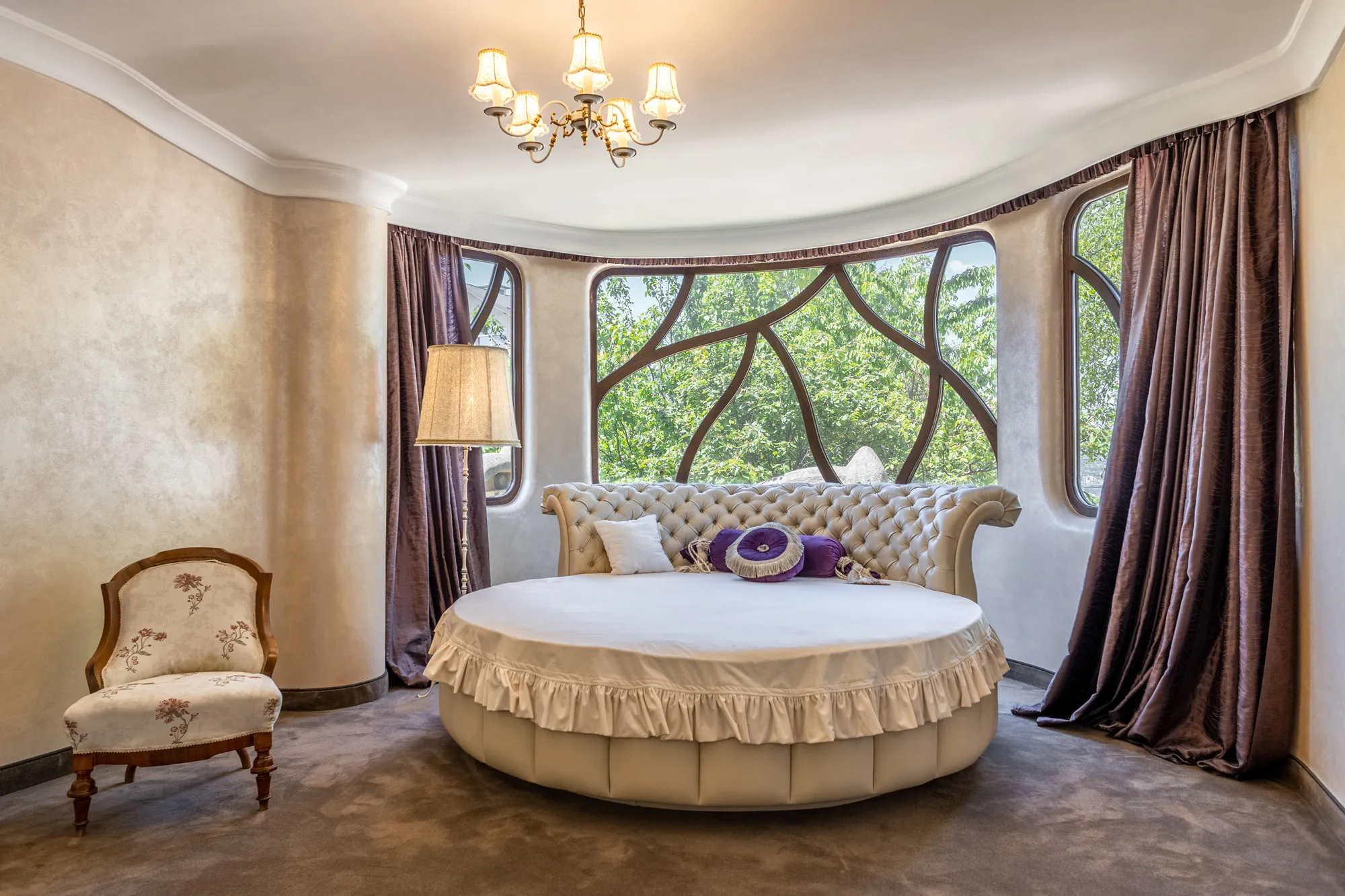 Zona matrimonială este cuprinsă dintr-un dormitor zugrăvit cu vopsea stucco veneziano iar ornamentele cât și corpurile de iluminat sunt placate cu aur de 24 karate (plinta, ornamente pat, lustre), baie dotată cu duș , cu un blat de marmură roșiatică si decorată cu mozaic Bisazza placat cu platină , toaletă dotată cu funcția de spalare si uscare, chiuveta si un dressing cu balcon.