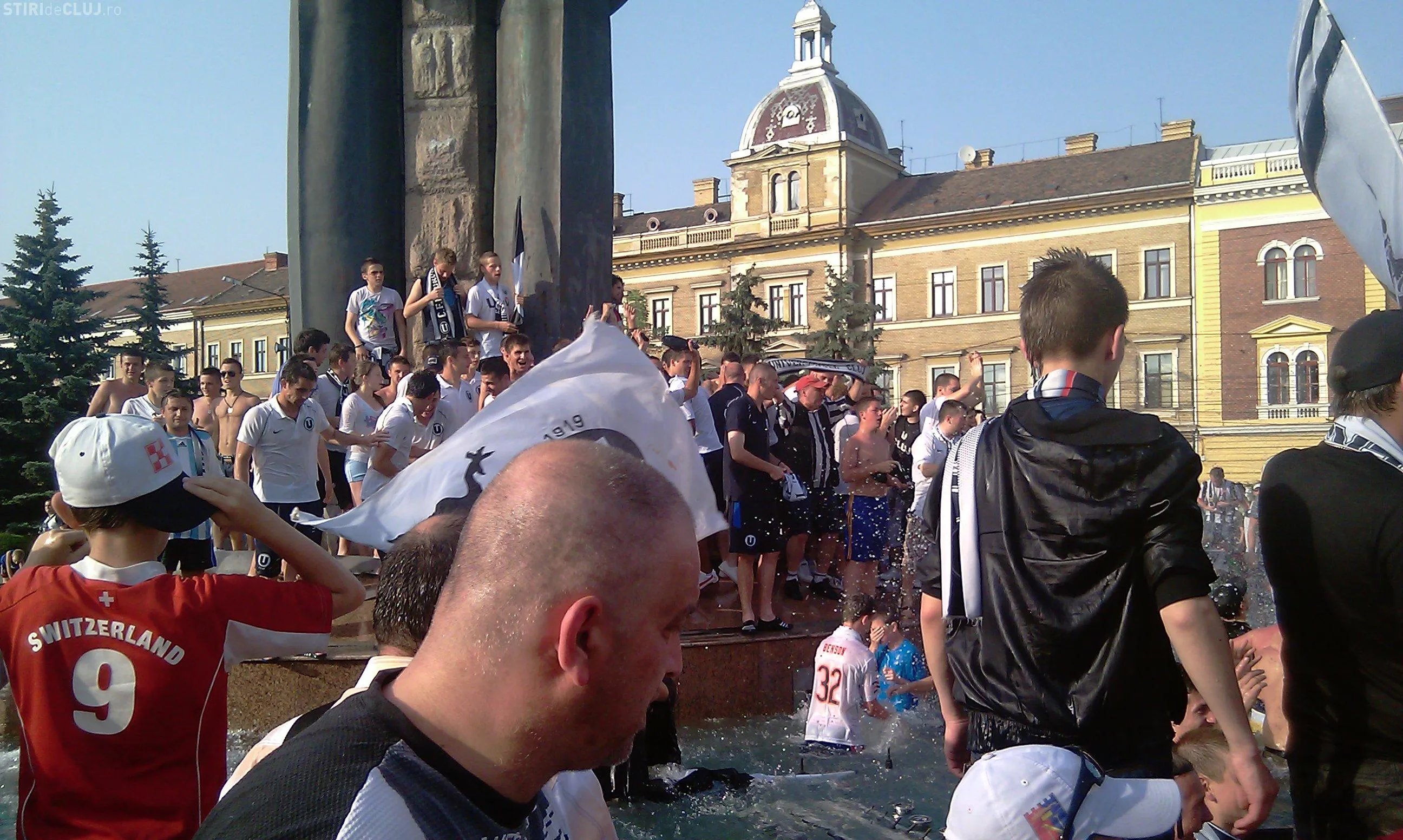 Suporterii Universitatea Cluj au stricat fantana "cantatoare" din Piata Avram Iancu - Galerie FOTO