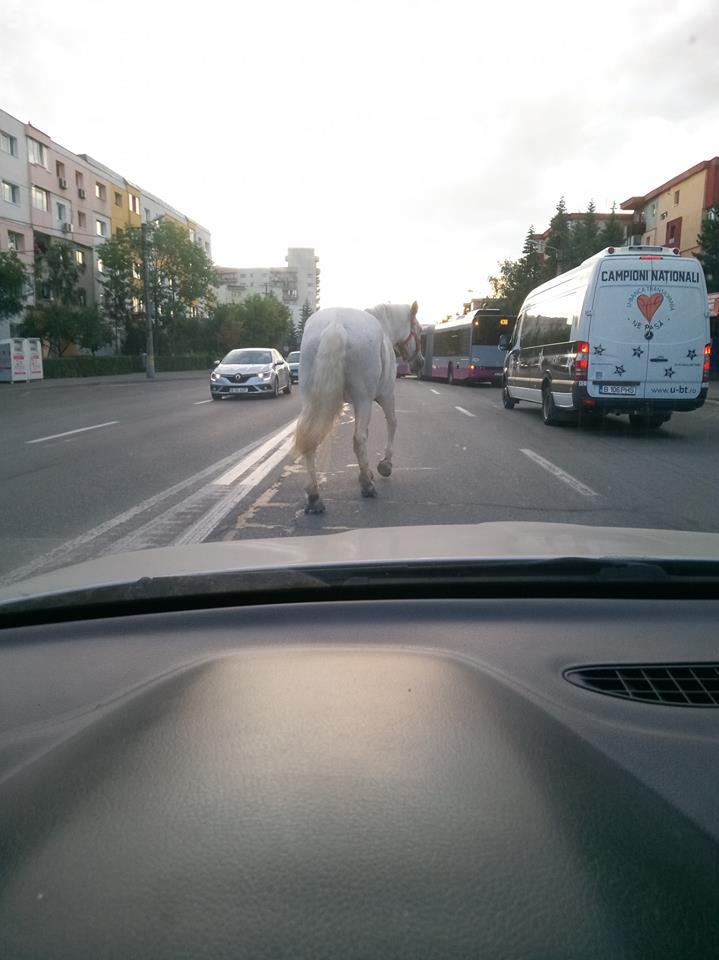 Un cal a fost surpirns în timp ce se plimba pe stradă, printre mașini, în cartierul Zorilor.