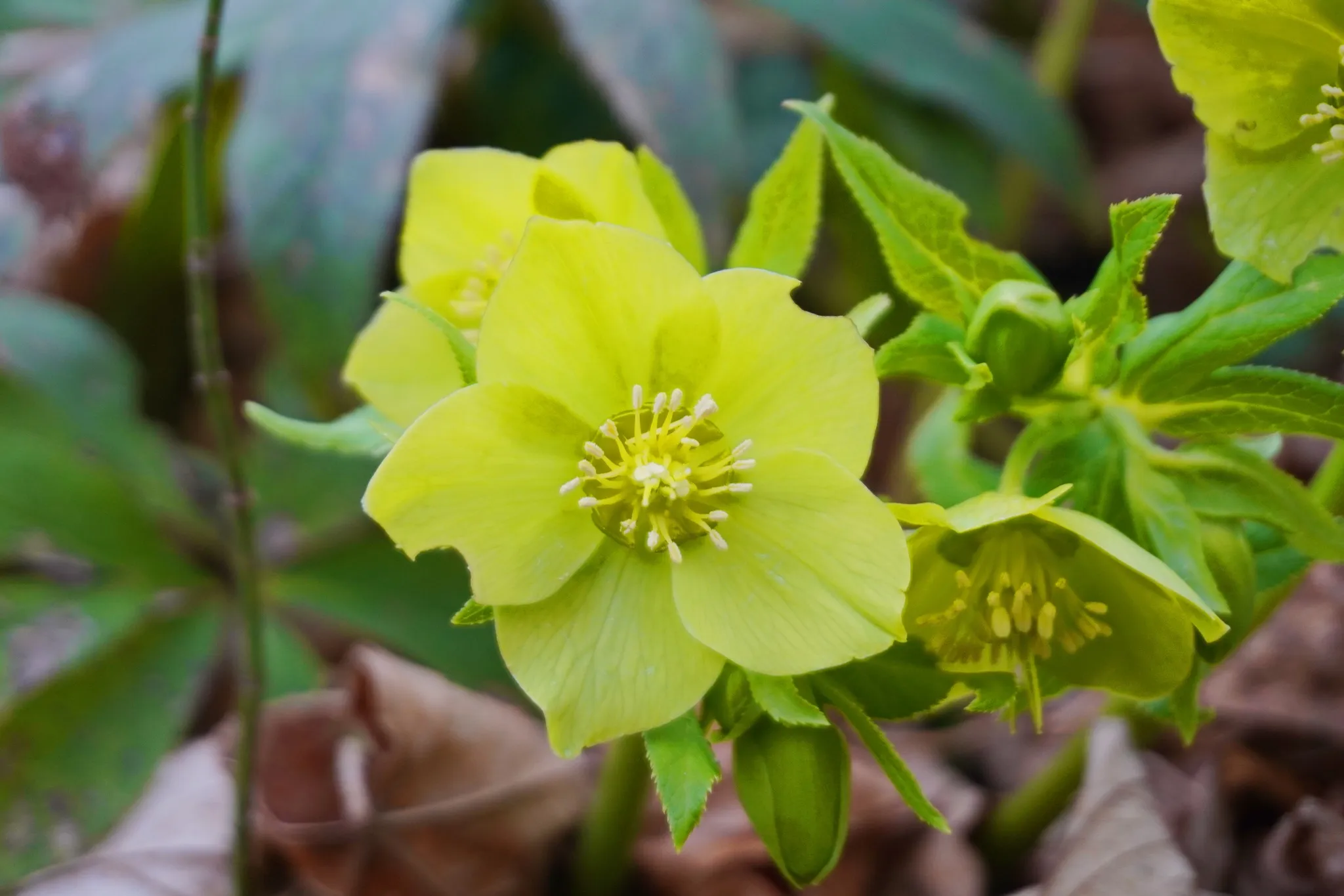 Helleborus niger 'Christmas Carol', un cultivar, plantă perenă cu frunze persistente, cunoscută pentru florile sale elegante care înfloresc primăvara timpuriu sau chiar în timpul iernii