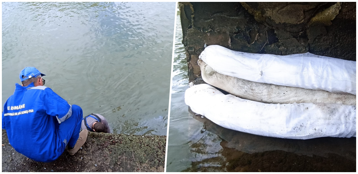 Specialiștii Sistemului de Gospodărire a Apelor (SGA) Cluj continuă acțiunile pe Someșul Mic. Aceștia au suplimentat materialul absorbant amplasat ieri în zonă. De asemenea, folosesc și un absorbant natural şi biodegradabil pentru a reține hidrocarburile, denumit spill sorb.