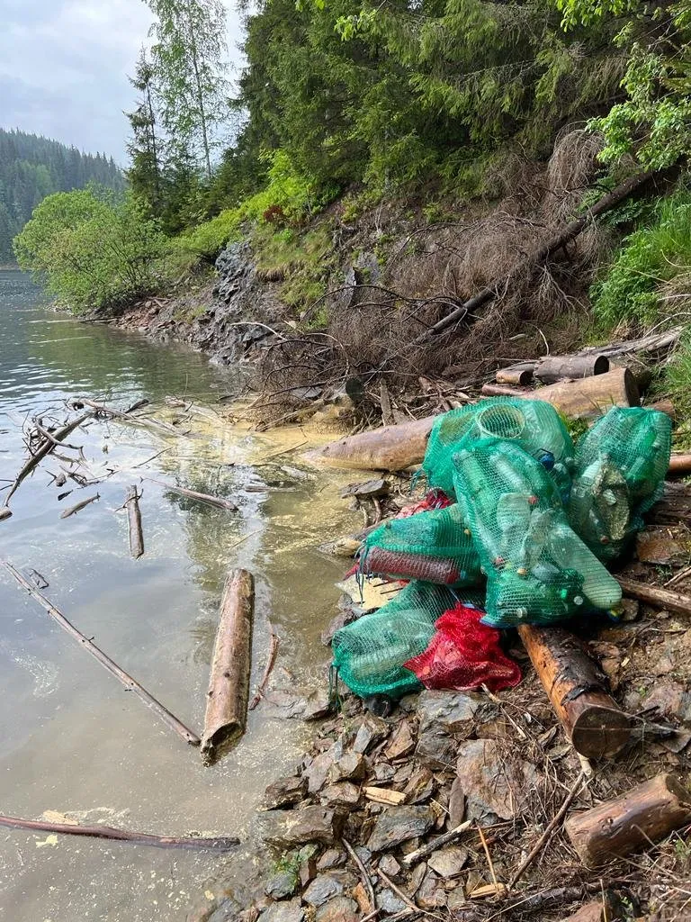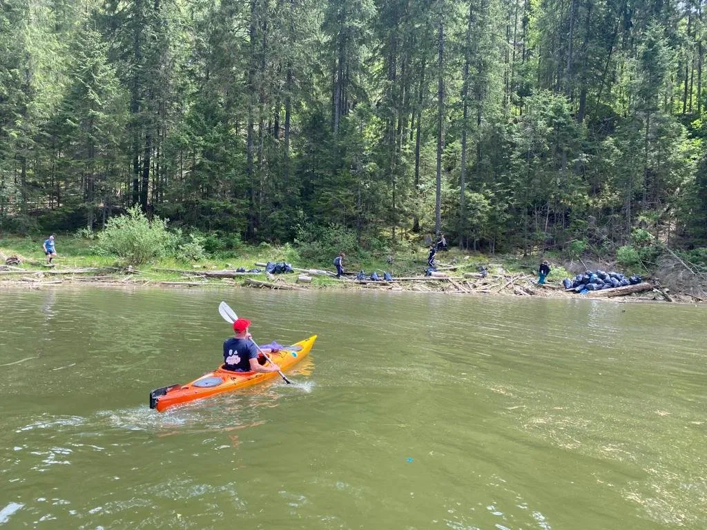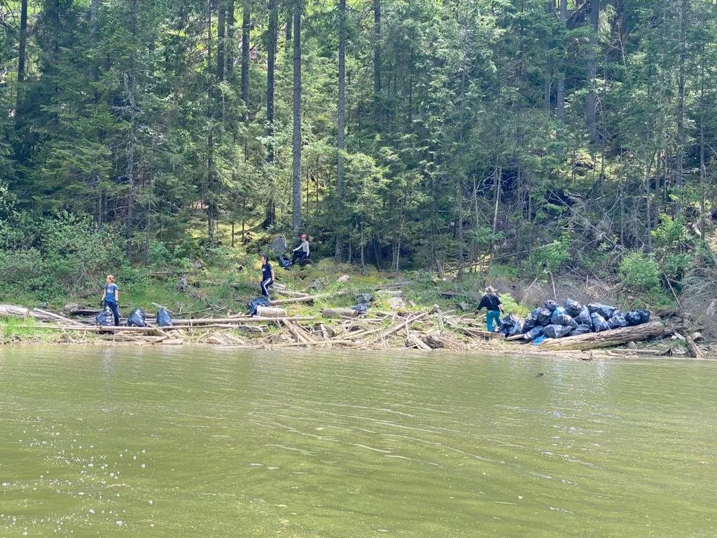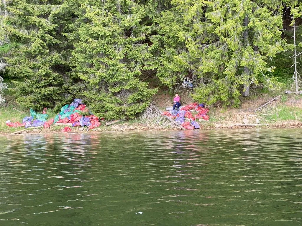 Sute de saci cu PET -uri adunați pe lacul Beliș la o acțiune de igienizare - FOTO