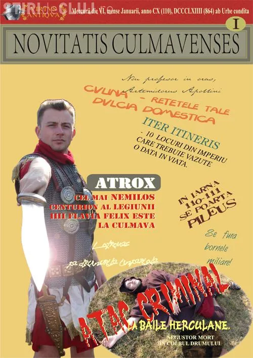 "Pepene gigant cules in Villa Rustica de la Chinteni", "Atac criminal la Baile Herculane" sau "Se fura bornele miliare de pe drumurile Daciei", sunt doar cateva dintre titlurile ziarului.
