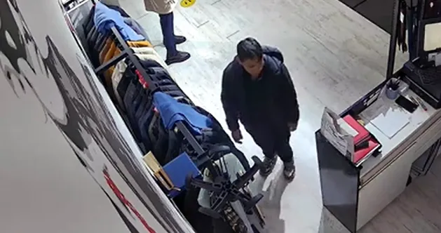 În imagini, tânărul se apropie de o haina pe un umeraș, dar este clar că telefonul l-a observat deja dinainte. După ce se preface interesat de haină, se întoarce brusc spre stânga, ia telefonul fără ezitare și îl bagă în buzunar. În câteva secunde, se îndepărtează și părăsește magazinul. Acesta a reușit să plece fără a atrage atenția imediat.