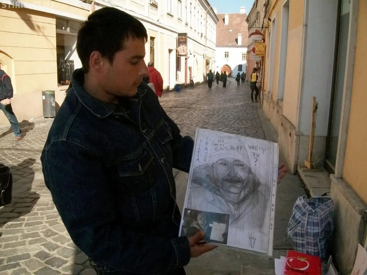 Mircea Varga este un tanar de 25 de ani nevoit sa isi castige existenta din portretele pe care le realizeaza trecatorilor si turistilor care ajung prin Piata Muzeului, Eroilor sau Piata Matei Corvin. "Ma simt ca un caine fara adapost", marturiseste el.