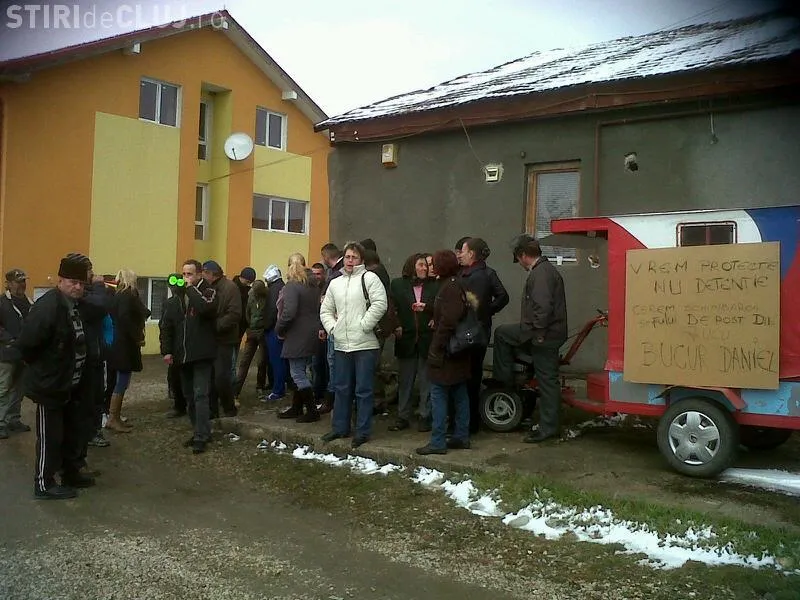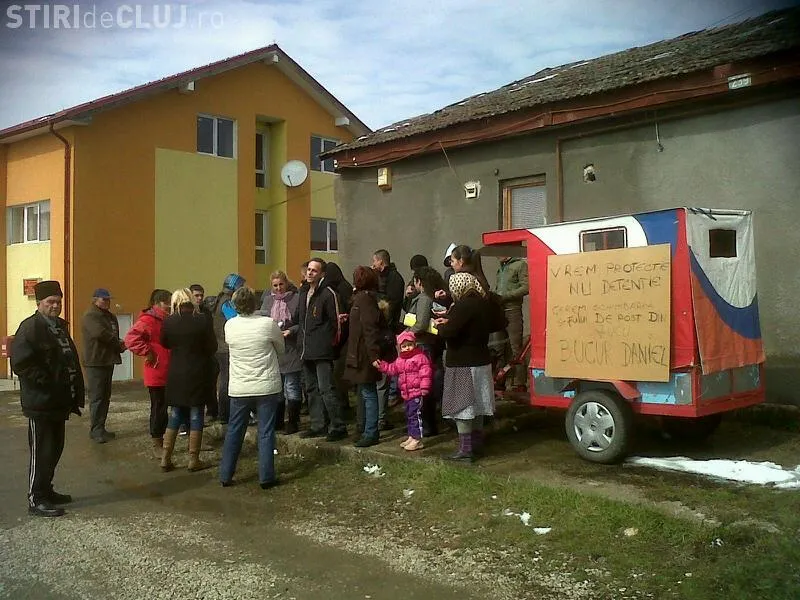 Protestatarii au afișat un banner pe care au scris: ”Vrem protecţie, nu detenţie. Cerem schimbarea şefului de post din Jucu, Daniel Bucur”.