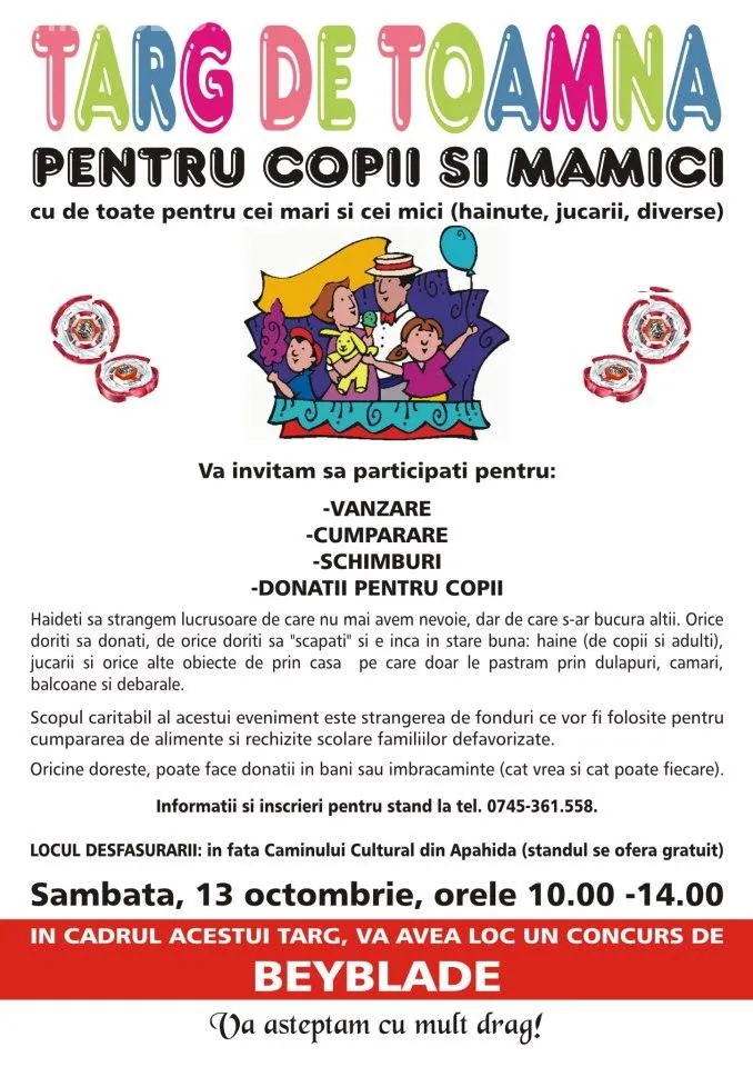 Târg de toamnă la Cluj-Napoca. Puteți dona haine, jucării și alte lucruri pentru copii