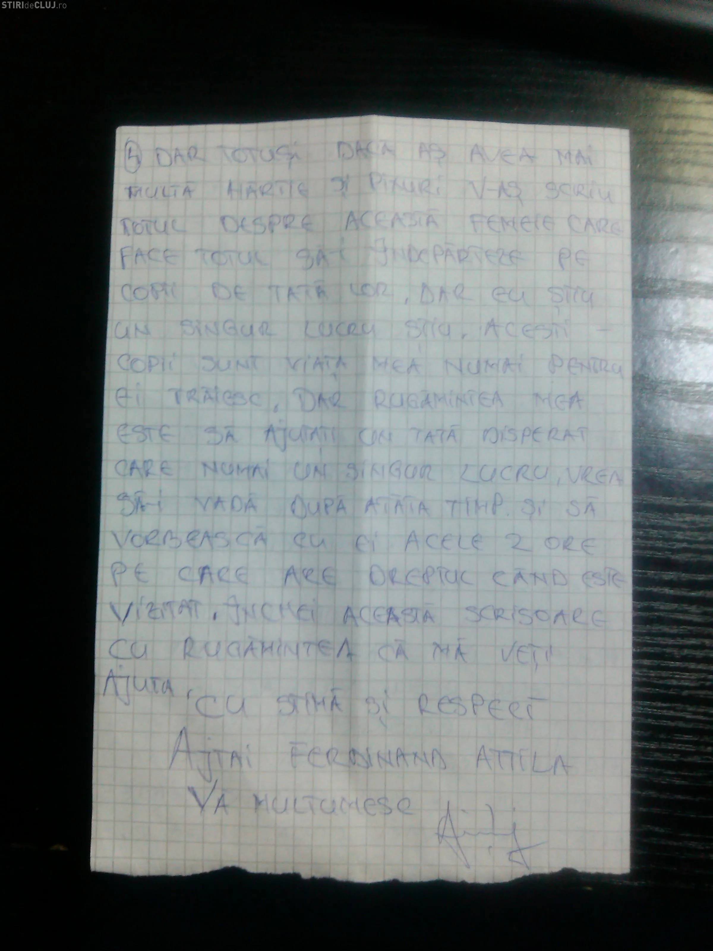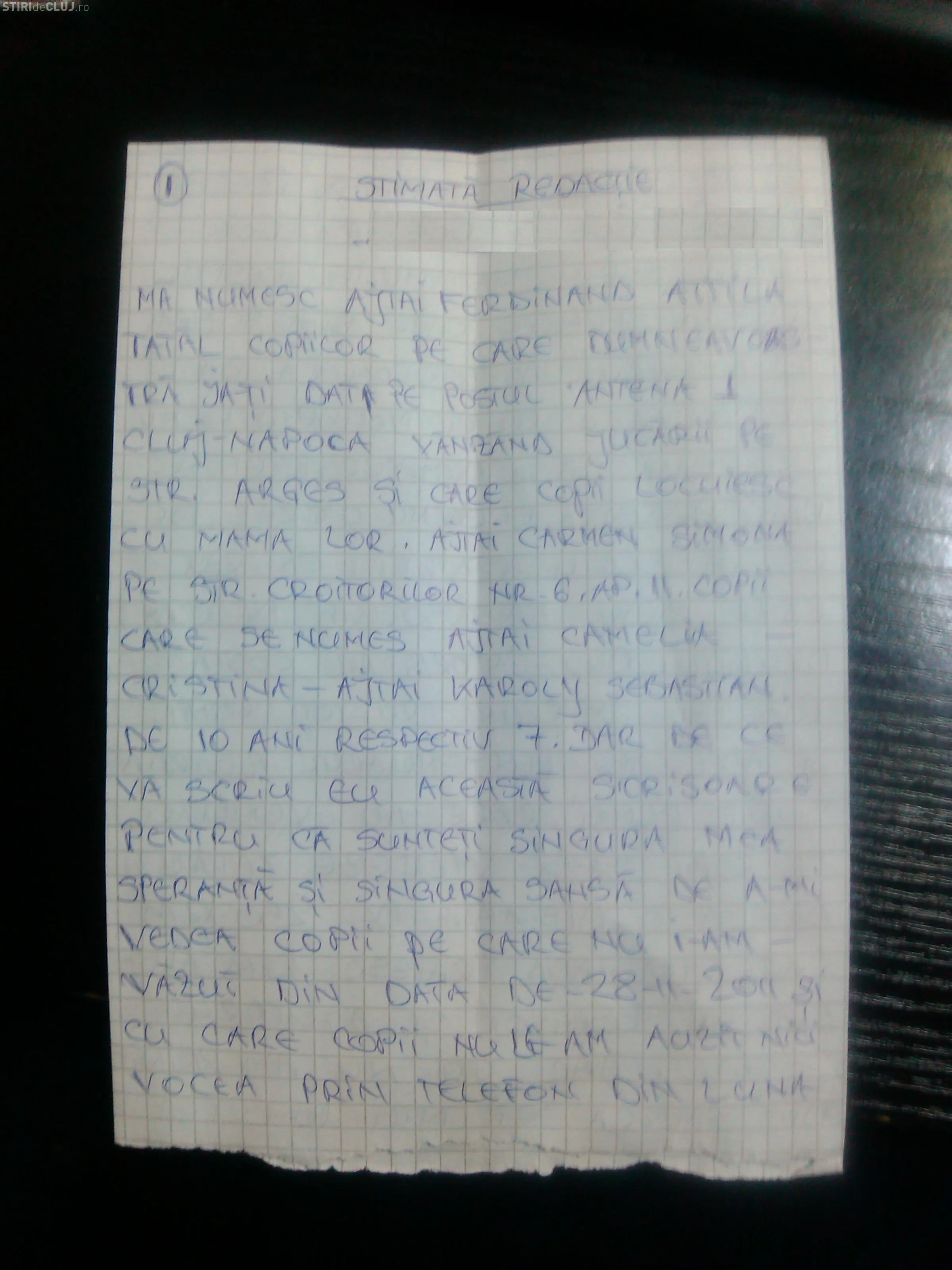 Tatăl copiilor care au fost filmaţi de Ştiri de Cluj în timp ce vindeau jucării în Piaţa Mihai Viteazu a trimis o scrisoare emoţionantă din penitenciarul Bistriţa, unde este închis.