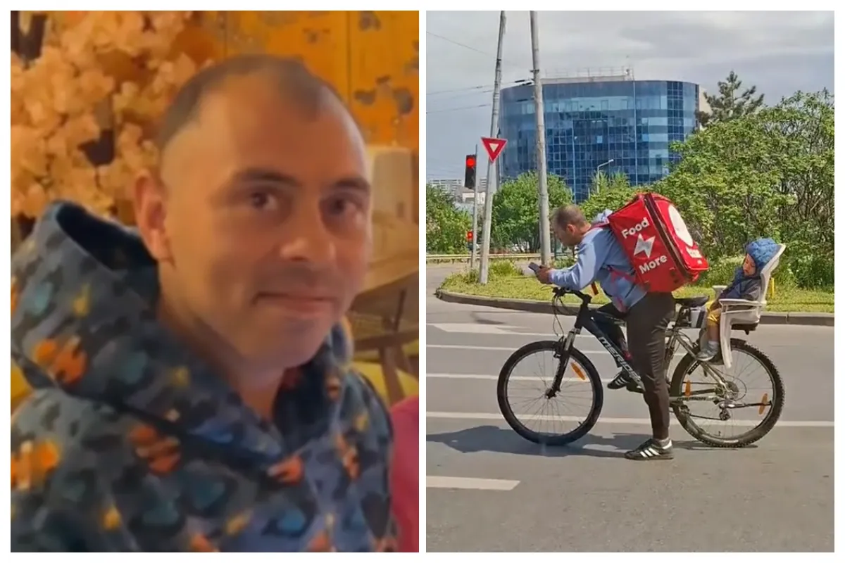 Tăticul livrator pe bicicletă, care a emoționat România ducându-și copilul cu el la muncă, a fost găsit. Pescobar i-a făcut un cadou impresionant VIDEO