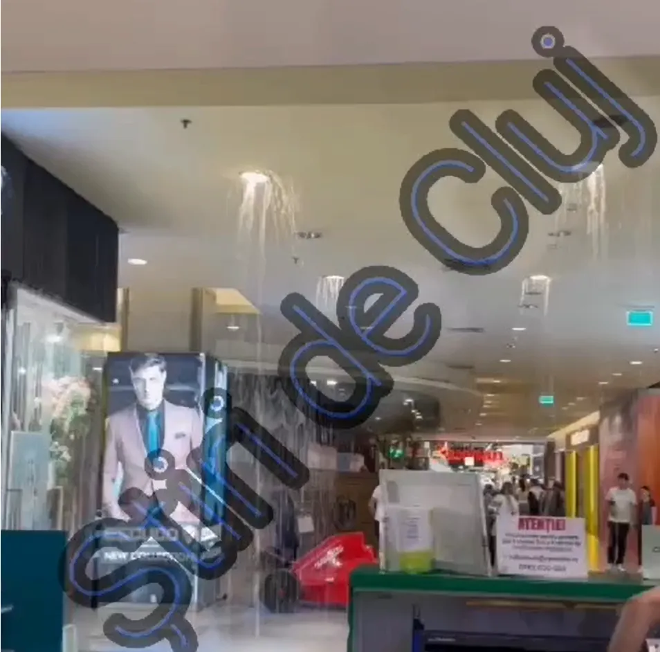 ”Furtuna puternică ce s-a abătut asupra oraşului Cluj-Napoca în seara zilei de 13 iunie 2024 a afectat şi Iulius Mall. Din cauza cantităţii masive de precipitaţii care a căzut într-un interval de timp foarte scurt, cotul de la o ţeavă ce colectează apa pluvială s-a desprins, deteriorând o porțiune redusă din tavanul fals din gips carton, care a cedat. Dorim să subliniem faptul că, în timpul acestui eveniment intempestiv, nicio