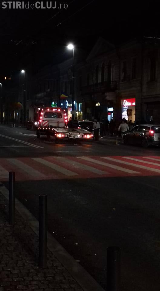 Două taximetre au fost lovit de pe strada Memorandumului de o mașină de tractări auto. Accidentul s-a produs în zona benzi dedicate transportului în comun.