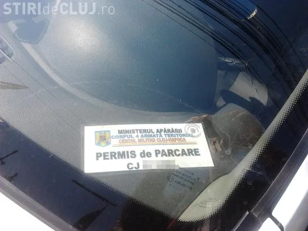 Un cititor Știri de Cluj i-a făcut o fotografie, iar pe bord era afișat un permis de parcare emis de Ministerul Apărării, Corpul 4 Armată Teritorial - Cercul MIlitar Cluj.