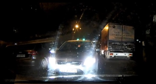Taximetristul și-a făcut cruce, uimit că nu e lăsat să treacă, dar până la urmă a fost obligat să dea cu spatele, negru de supărare.