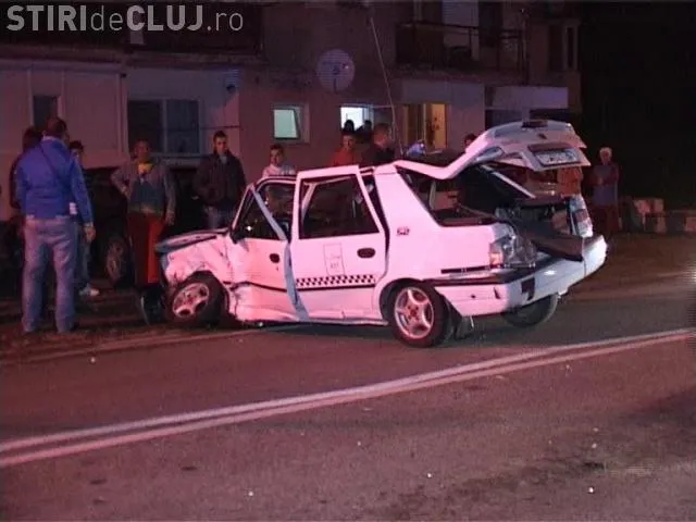 Un taximetru s-a făcut praf la Dej, pe strada 1 Mai, duminică seara.