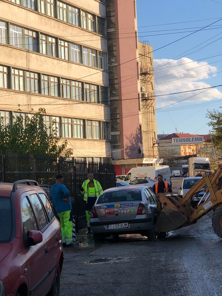 Taximetriștii suferă la tot pasul în Cluj-Napoca. Pe strada Câmpina, un taximetru parcat a fost ridicat și mutat cu ajutorul unui buldozer.