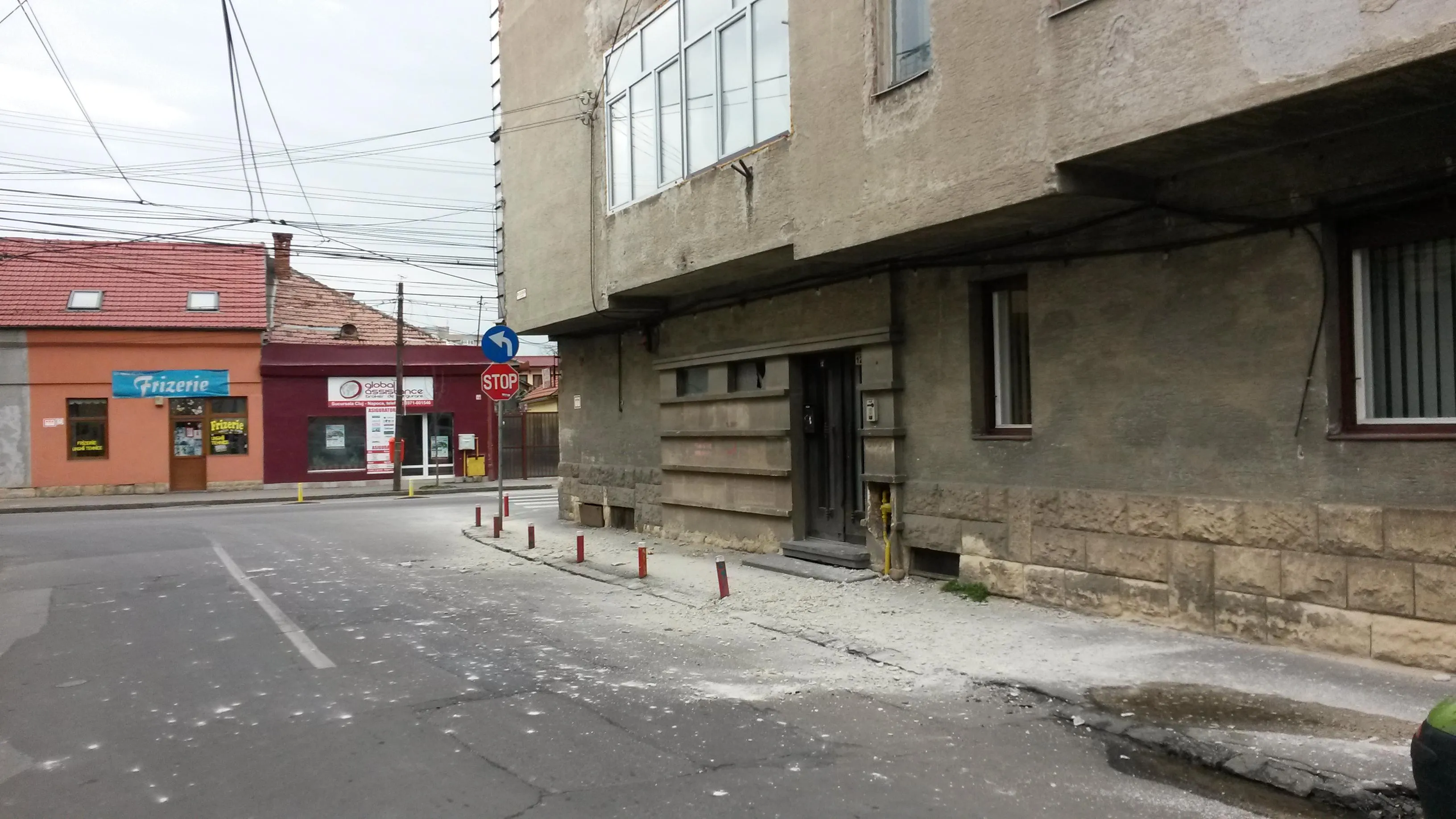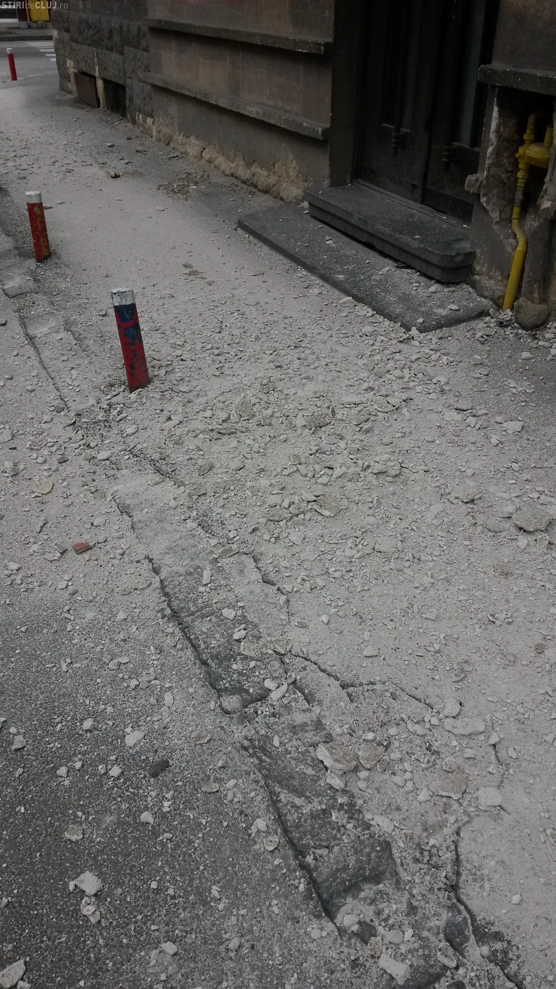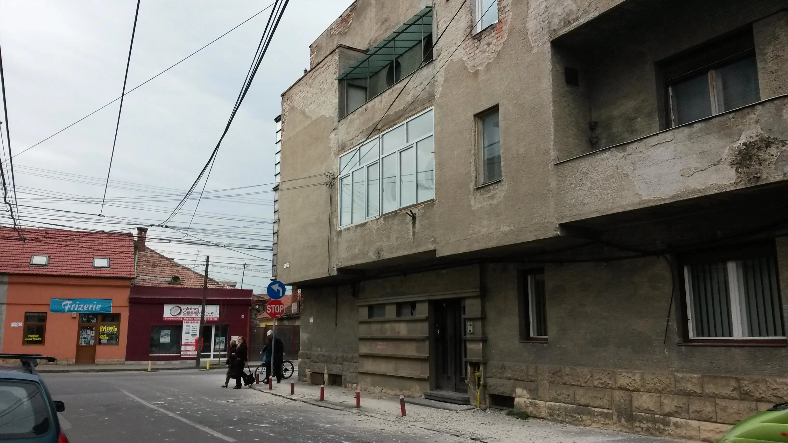 Incidentul s-a produs miercuri, 19 martie, iar locatarii au chemat pompierii pentru a curăța fațada clădirii de bucățile de tencuială care erau desprinse.