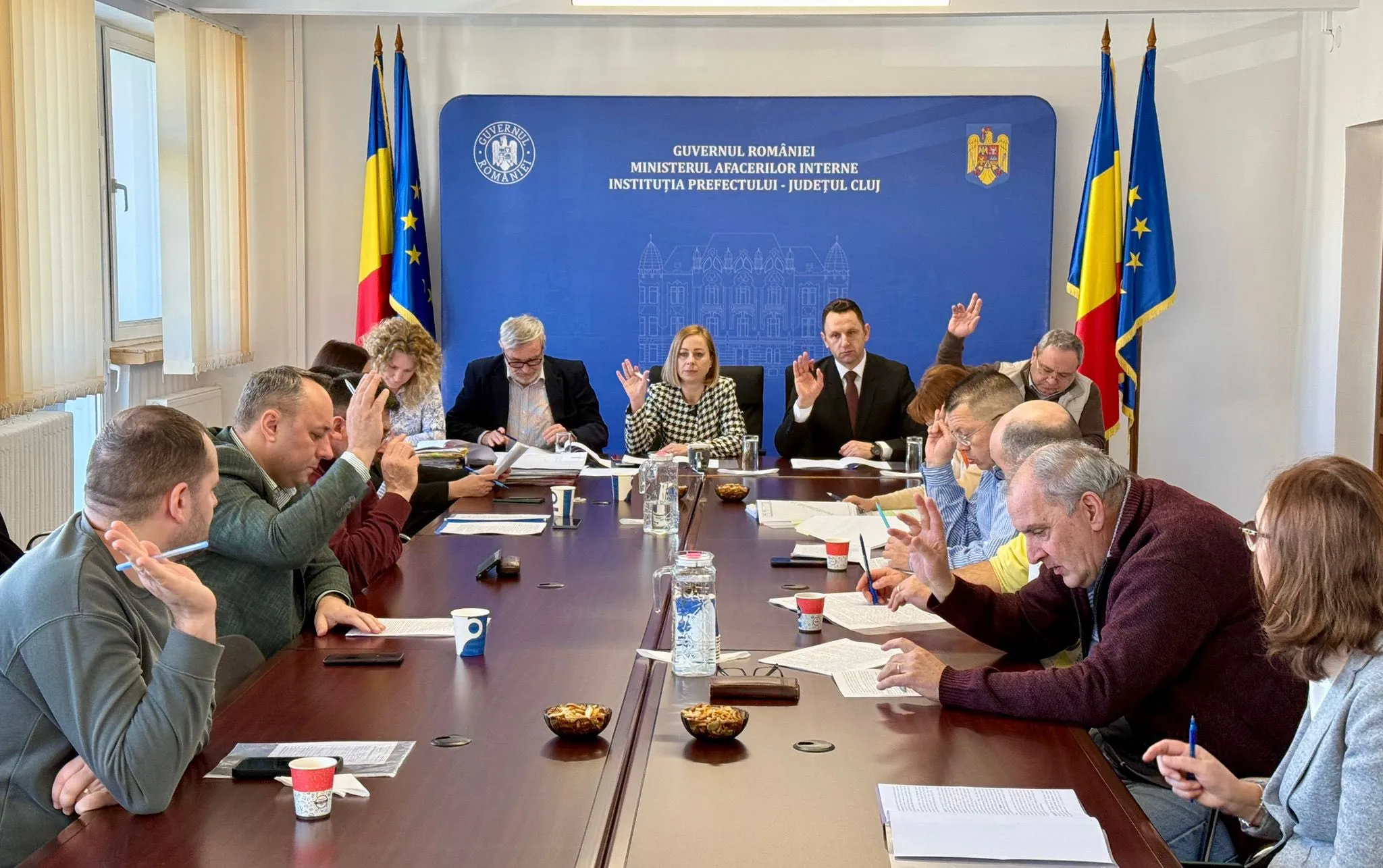 Astăzi, la sediul Instituției Prefectului Județului Cluj, a avut loc ședința lunară a Comisiei Județene pentru Stabilirea Dreptului de Proprietate Privată asupra Terenurilor. Ședința a fost prezidată de doamna prefect Maria Forna, alături de subprefectul Florentin Burz și reprezentanți ai instituțiilor implicate în fondul funciar.