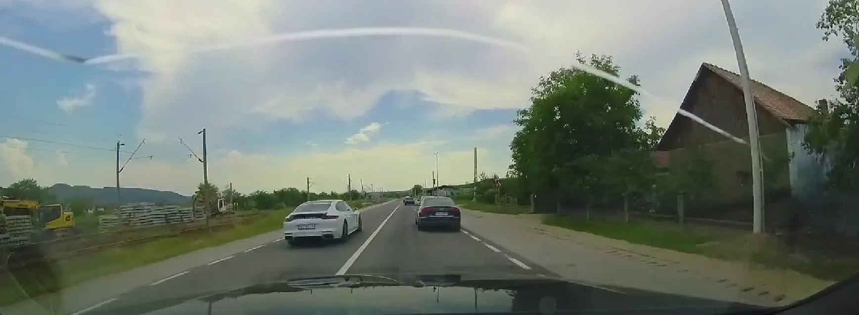 Camera de bord a unui participant la trafic a captat momentul în care șoferul teribilist depășește mai multe mașini. Acesta a postat imaginile pe un grup de Facebook destinat șoferilor.