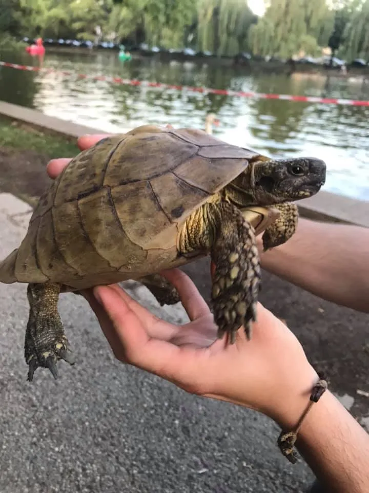 Iubitorii de animale s-au alertat și au început să ceară sfaturile specialiștilor. Așa s-a aflat că este de fapt o țestoasă de uscat, care a fost abandonată în parc. Marele risc era ca cineva să o arunce în lac, crezând că este țestoasă de apă.