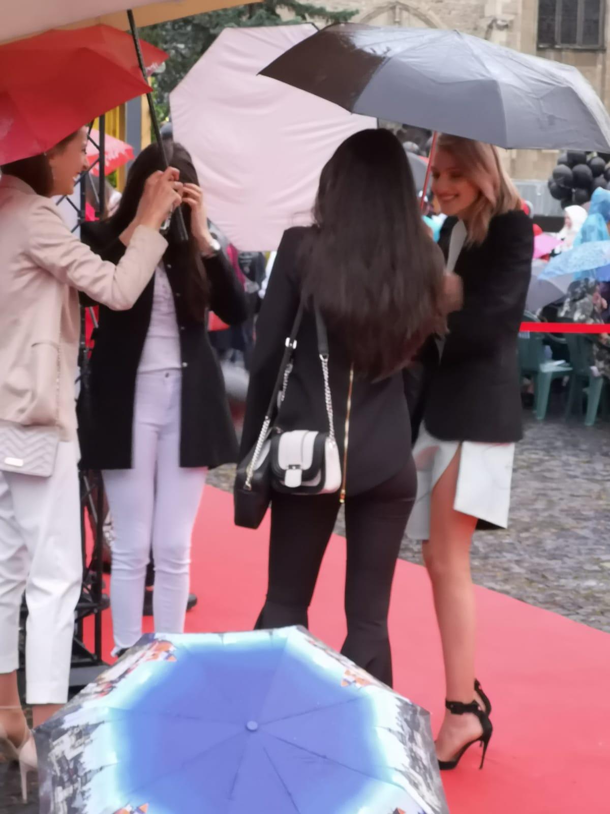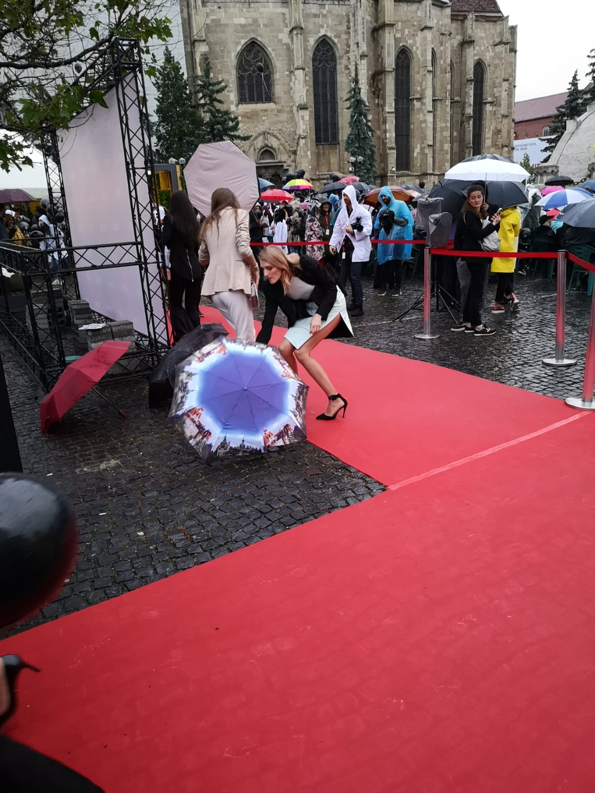 Gala ar fi trebuit să înceapă la 21.00, dar organizatorii au tot sperat că ploaia se va opri. Spectatorii s-au adunat și au stat în ploaie, în ținutele de gală.