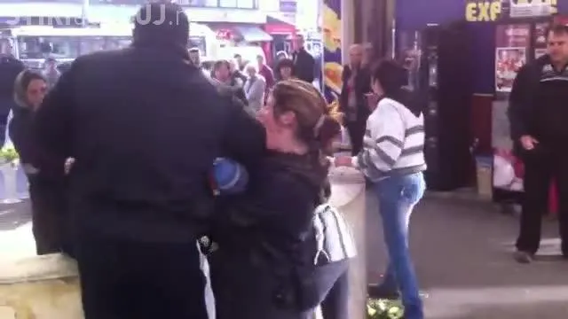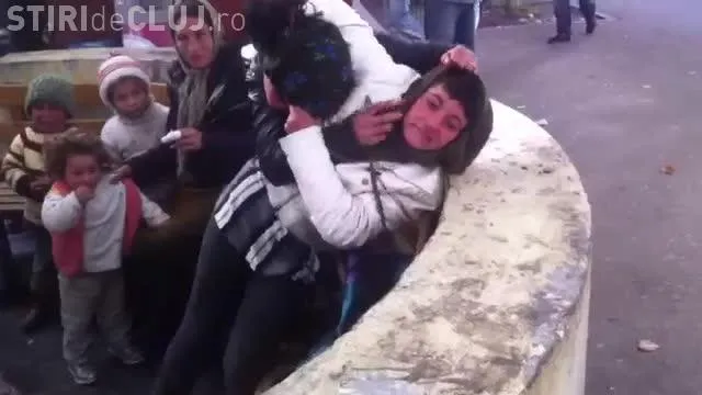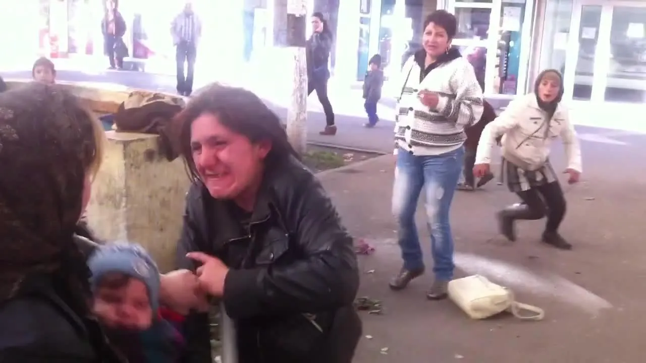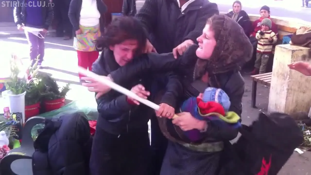 După ce s-au bătut cu florăresele, cele două țigănci au început să se bată între ele. Scenele au fost comice pe alocuri, una dintre femei l-a mușcat de mână pe un bărbat care a intervenit între ele.