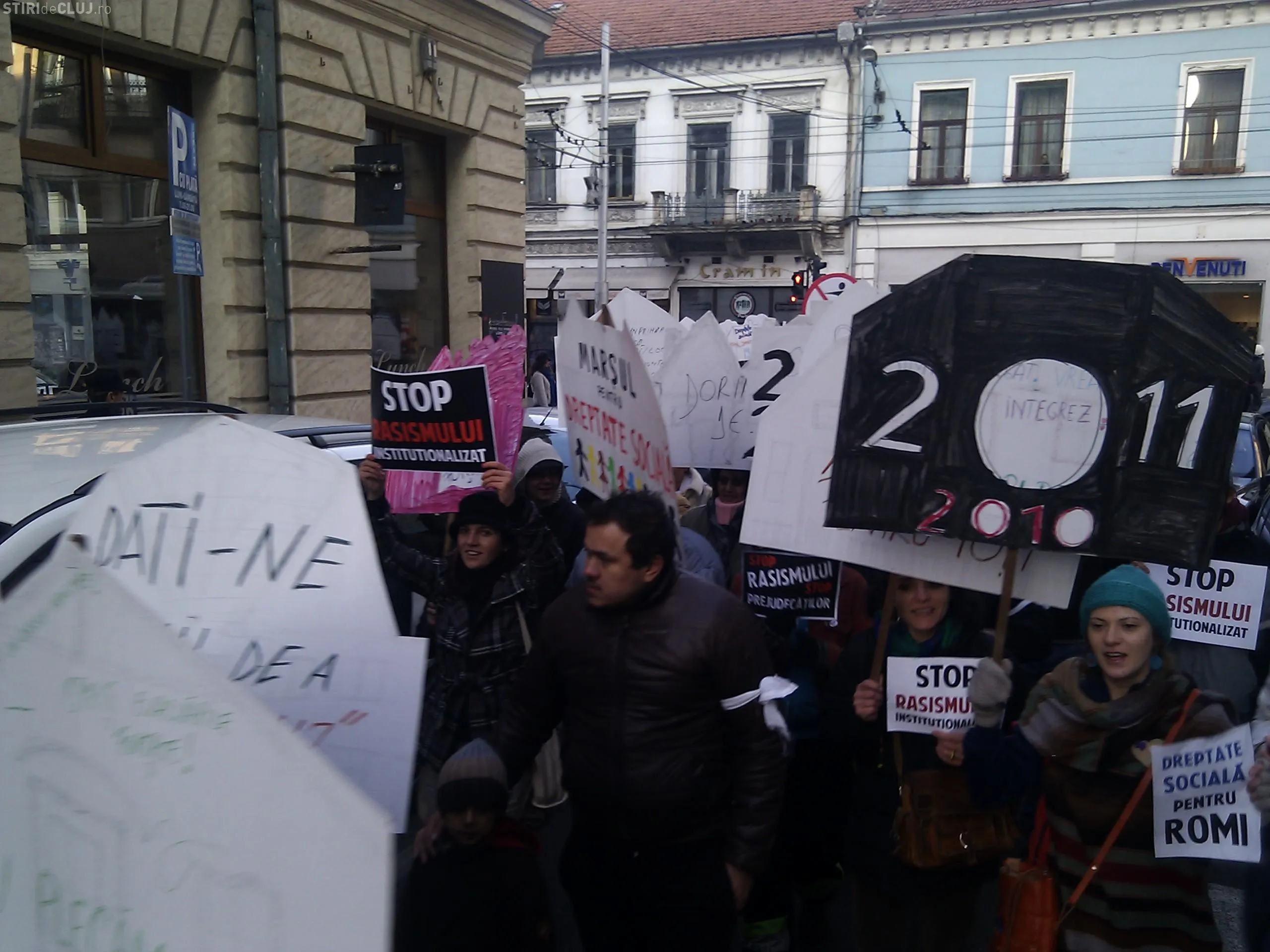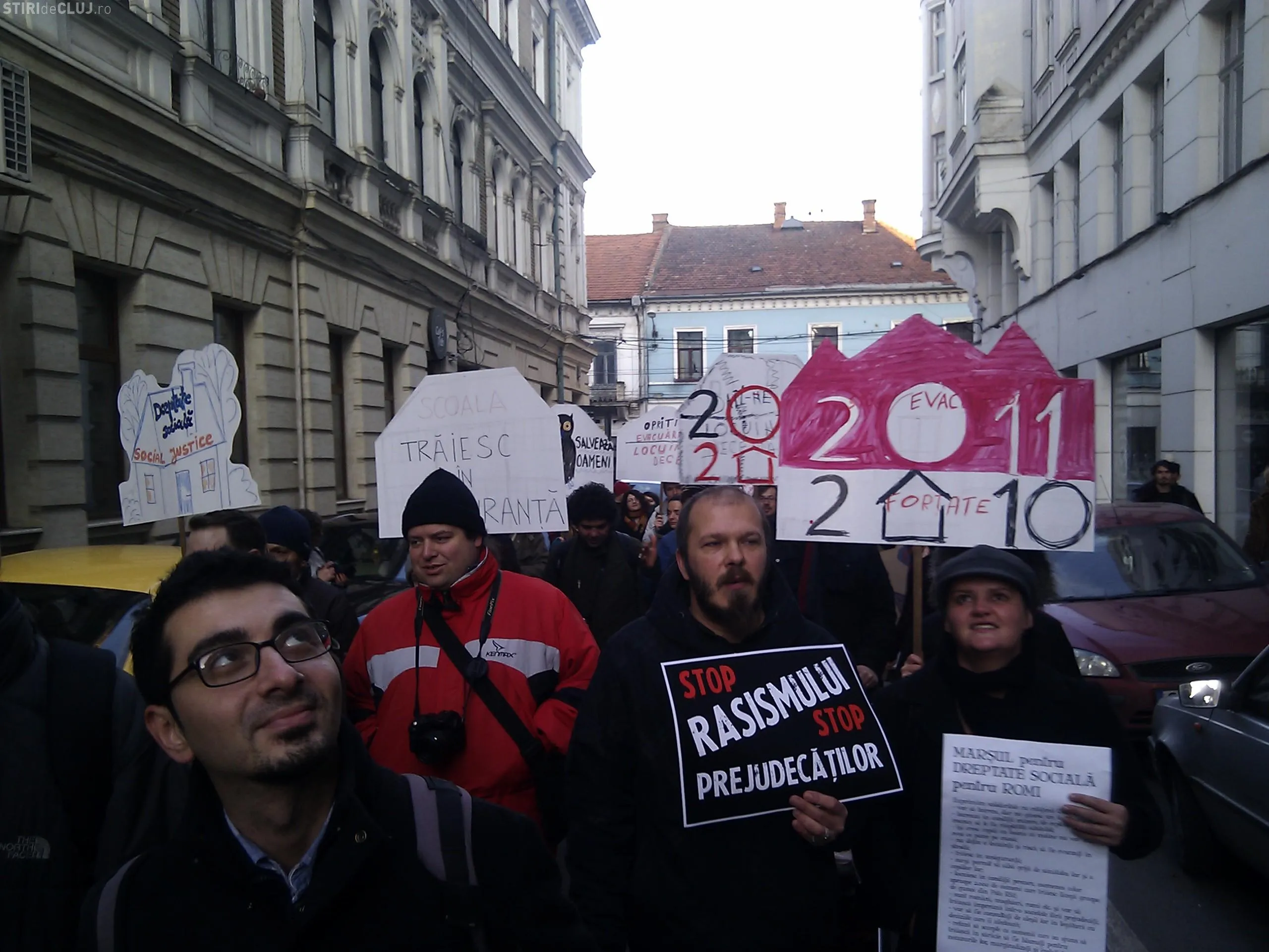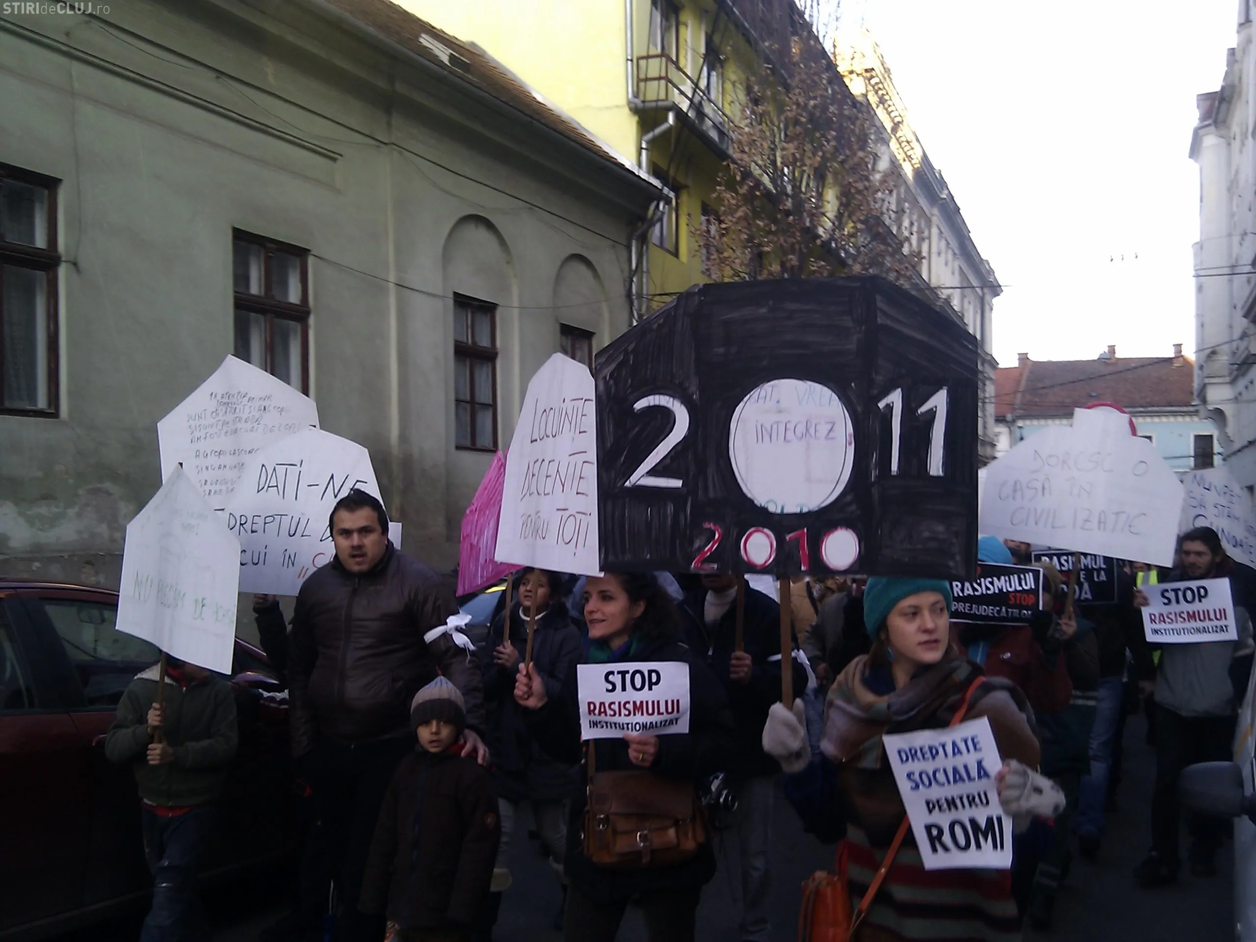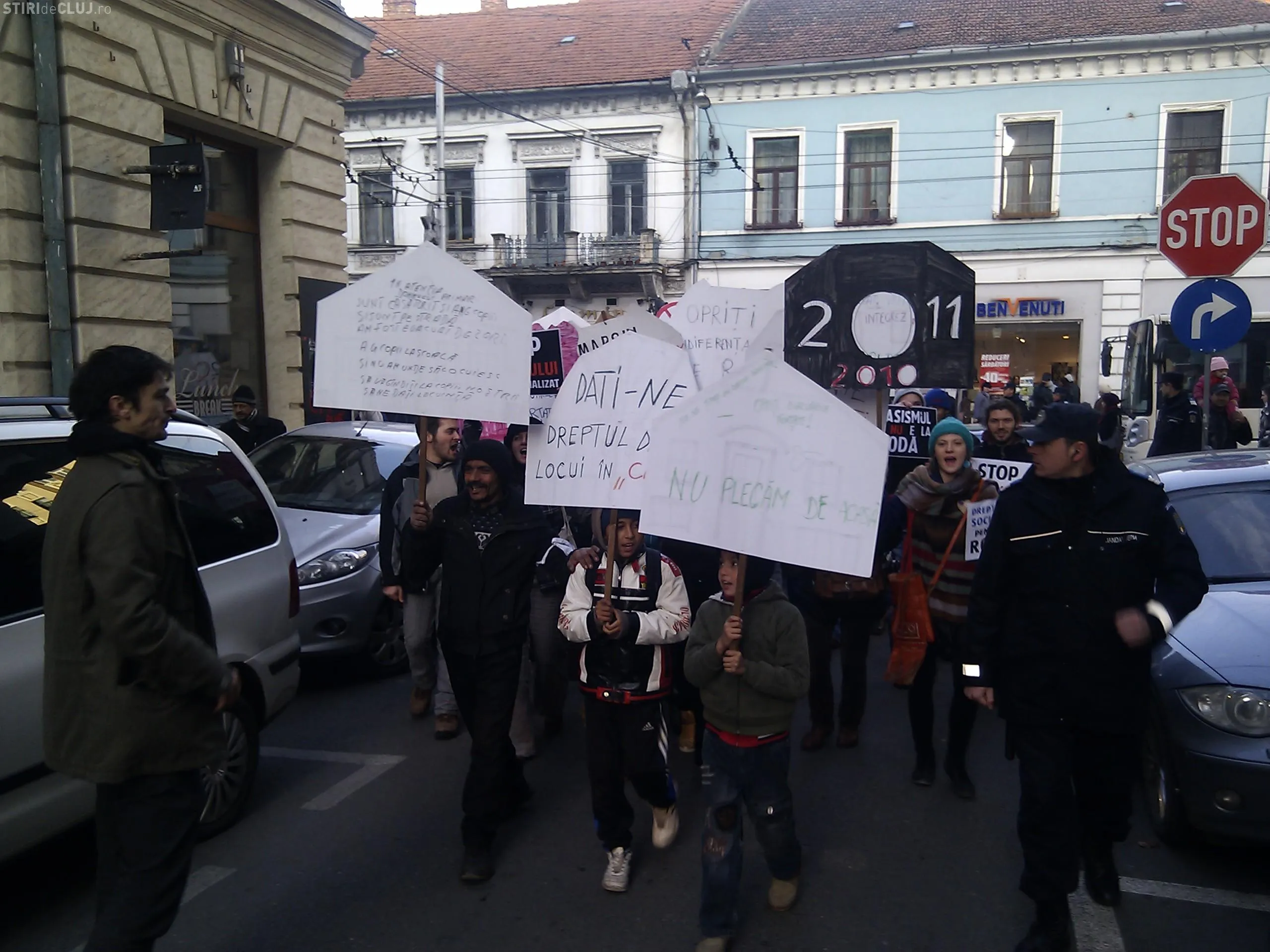 Tiganii mutati in decembrie 2010 de Primaria Cluj-Napoca de pe strada Coastei la Pata Rat au facut un mars in centrul Clujului. Protestatarii au pornit din Piata Unirii si au afisat pancarte.