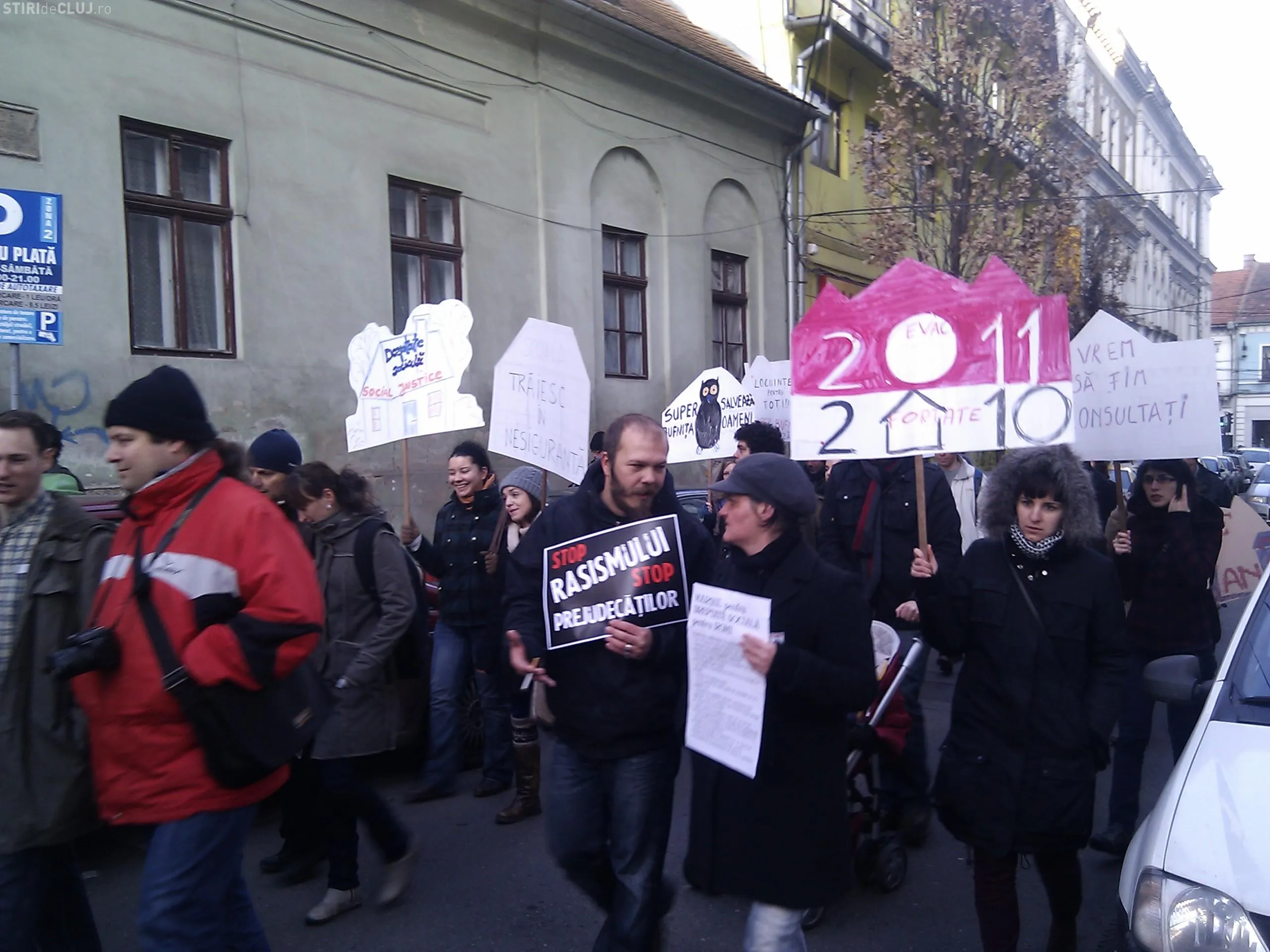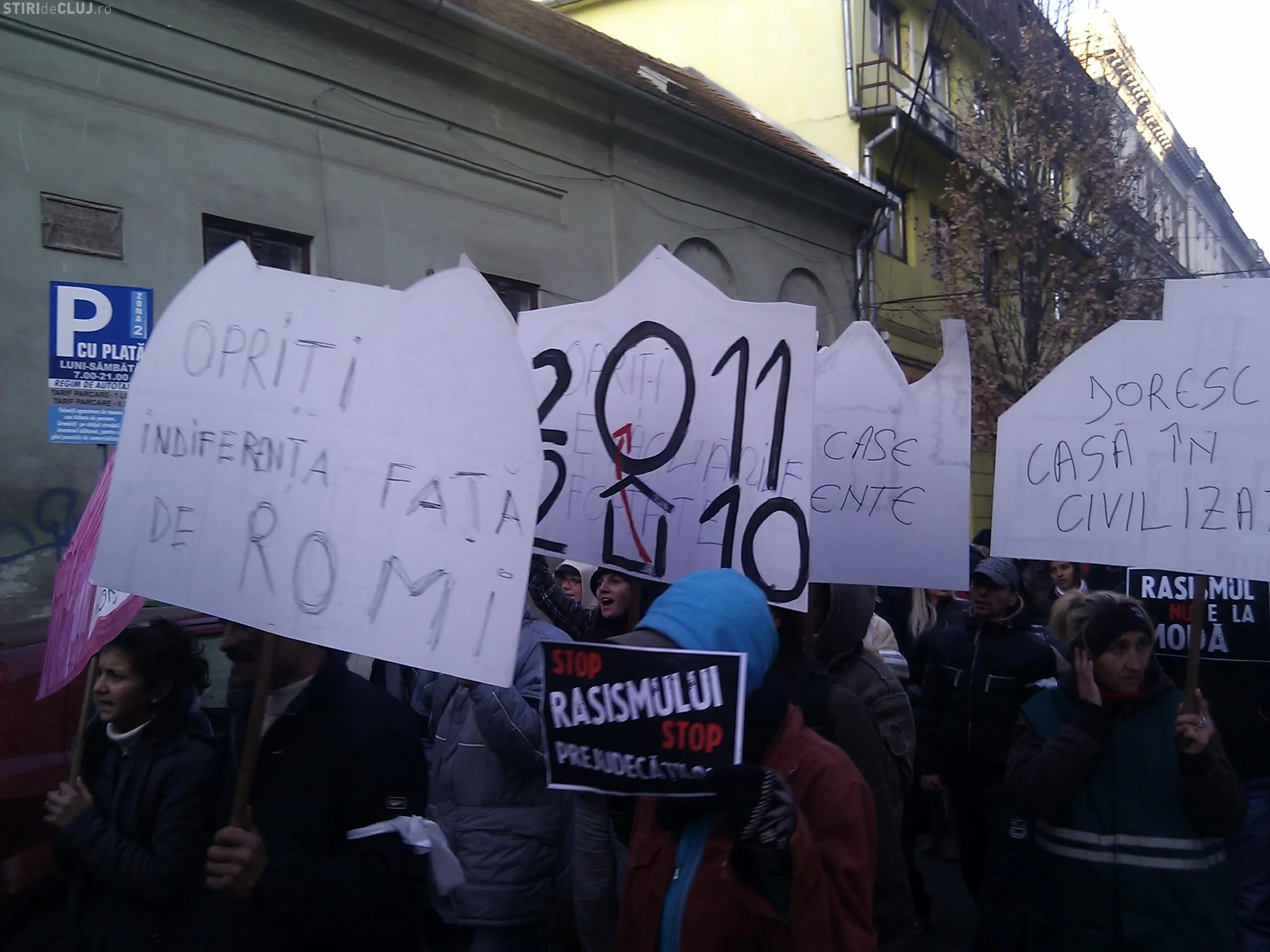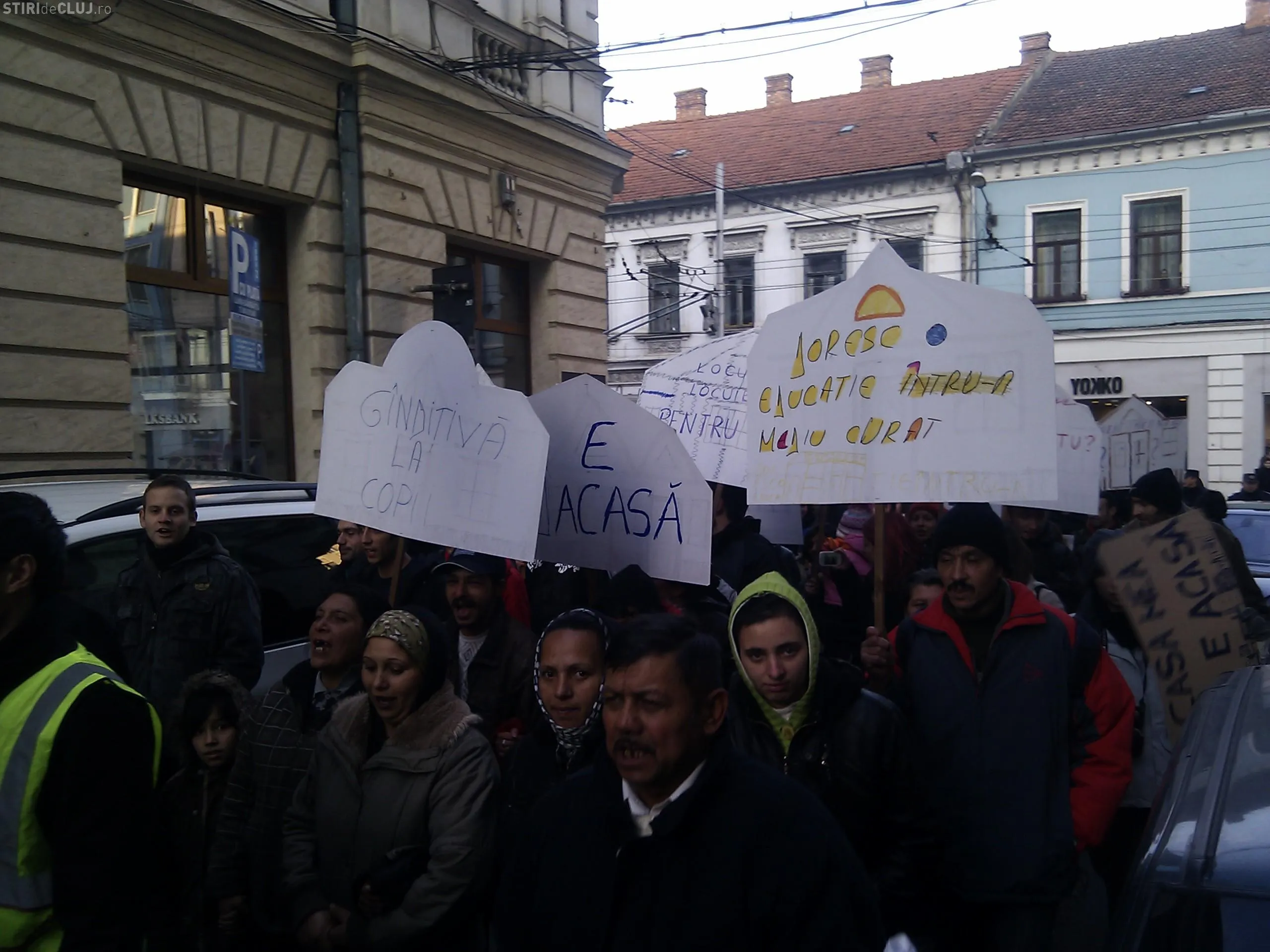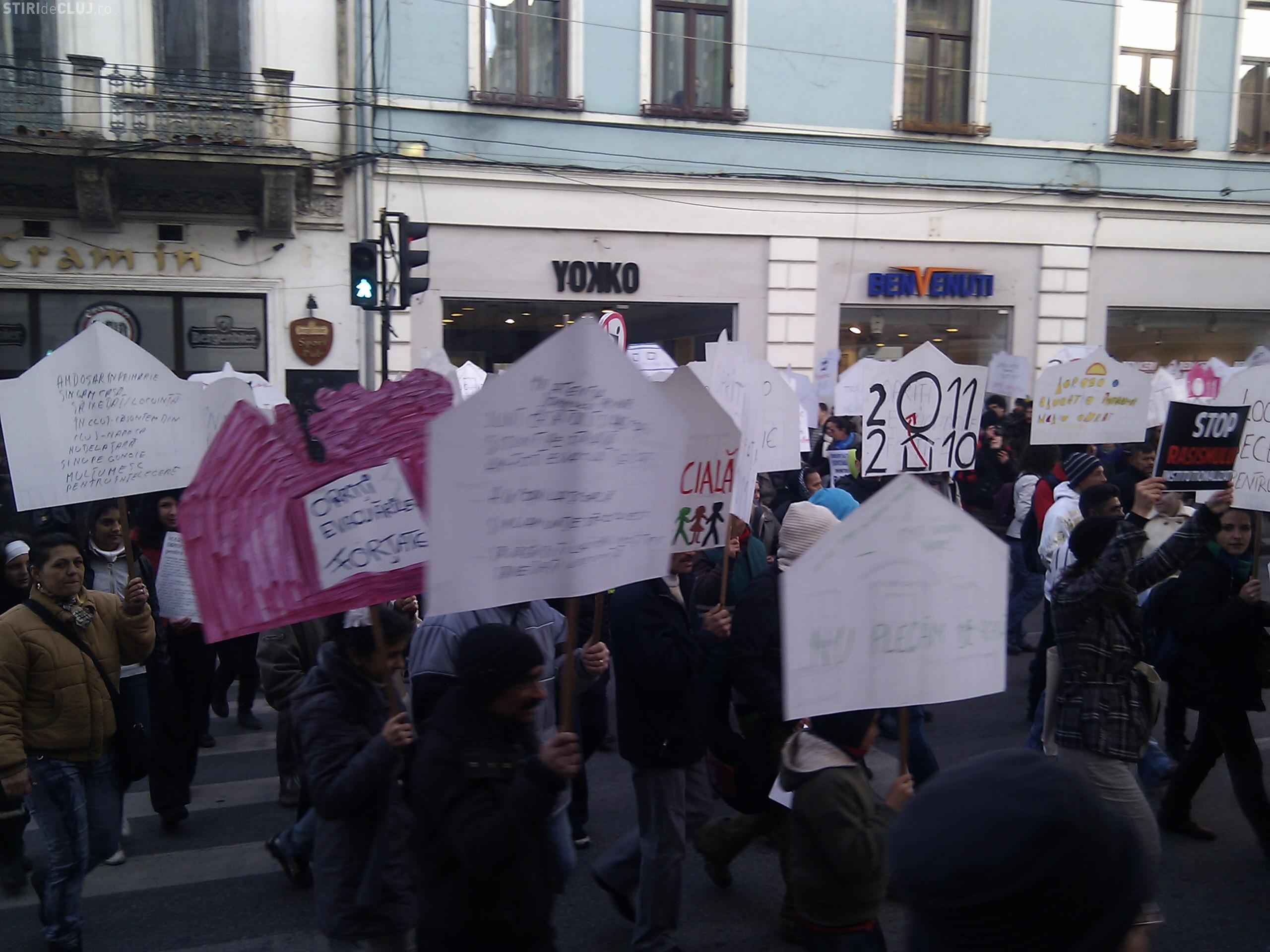 Tiganii mutati in decembrie 2010 de Primaria Cluj-Napoca de pe strada Coastei la Pata Rat au facut un mars in centrul Clujului. Protestatarii au pornit din Piata Unirii si au afisat pancarte.