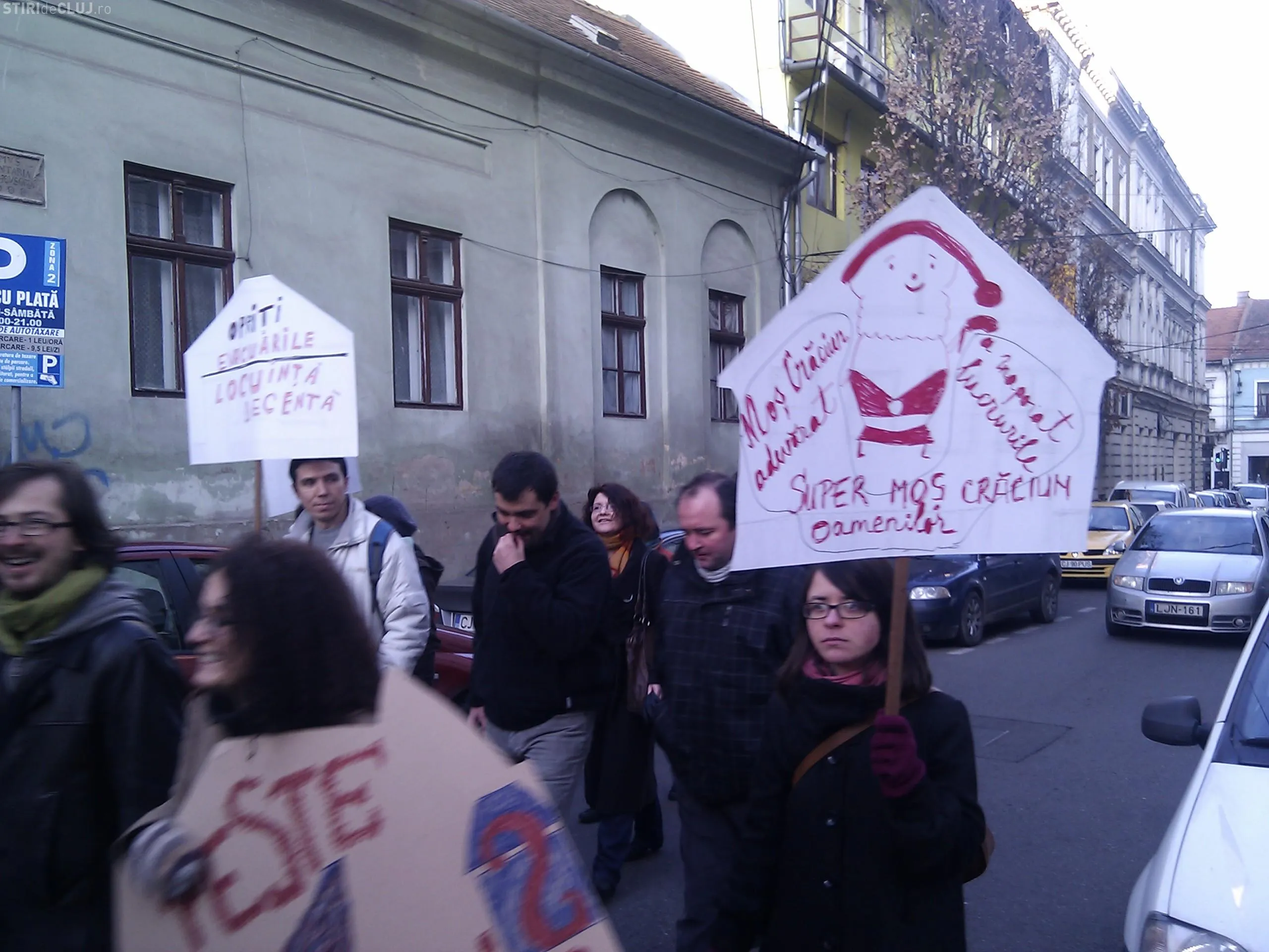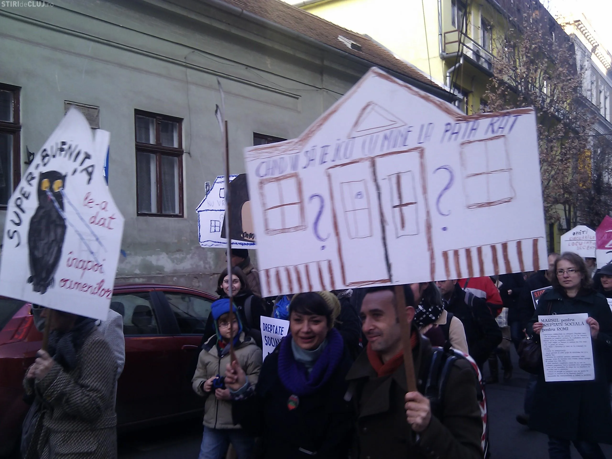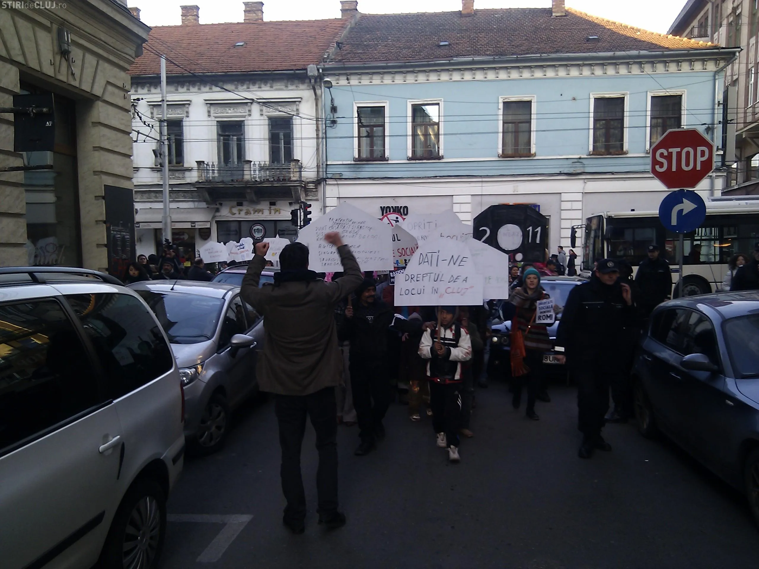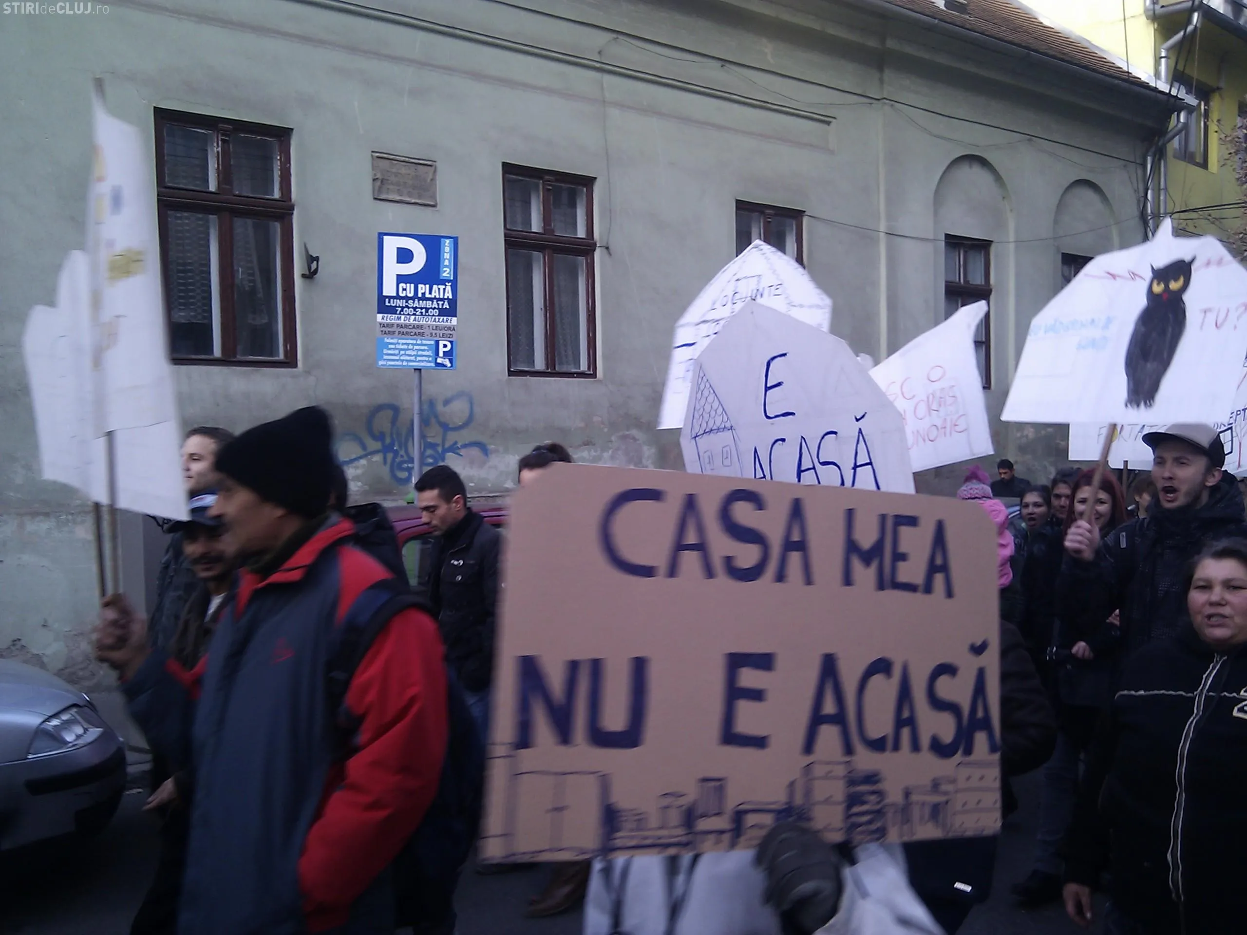 Tiganii mutati in decembrie 2010 de Primaria Cluj-Napoca de pe strada Coastei la Pata Rat au facut un mars in centrul Clujului. Protestatarii au pornit din Piata Unirii si au afisat pancarte.
