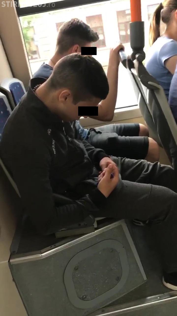 Doi tineri drogați au fost filmați într-un autobuz din Cluj-Napoca.