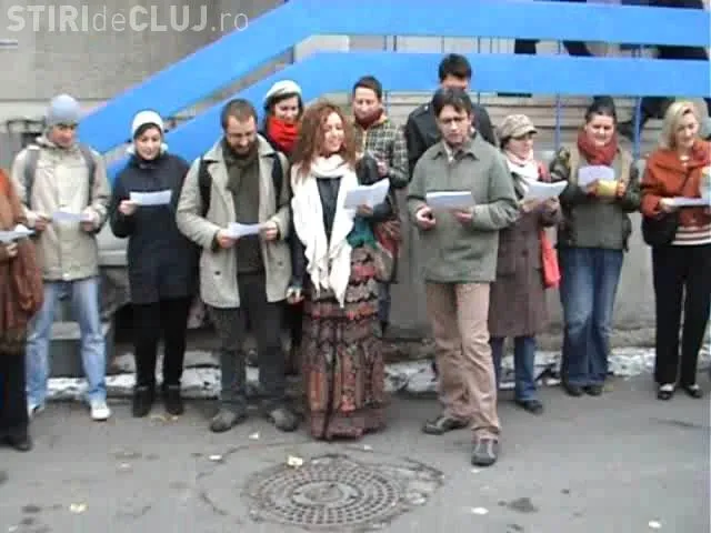 Tinerii Mânioşi din Cluj au cântat despre abuzurile poliţiei în faţă la IPJ Cluj. Poliţiştii au fost la un pas să-i ia pe sus - VIDEO