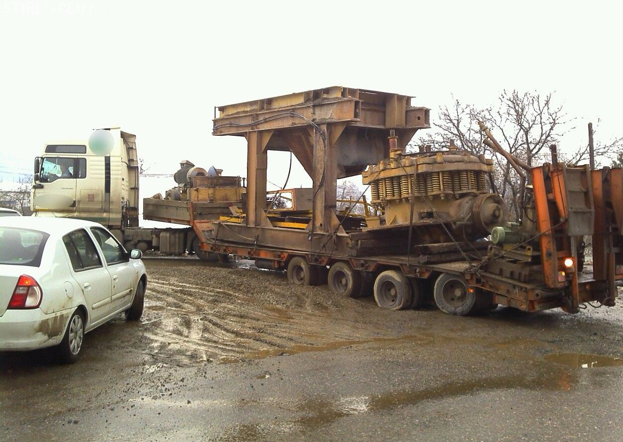TIR blocat intr-o groapa lata de 2 metri la Dej FOTO