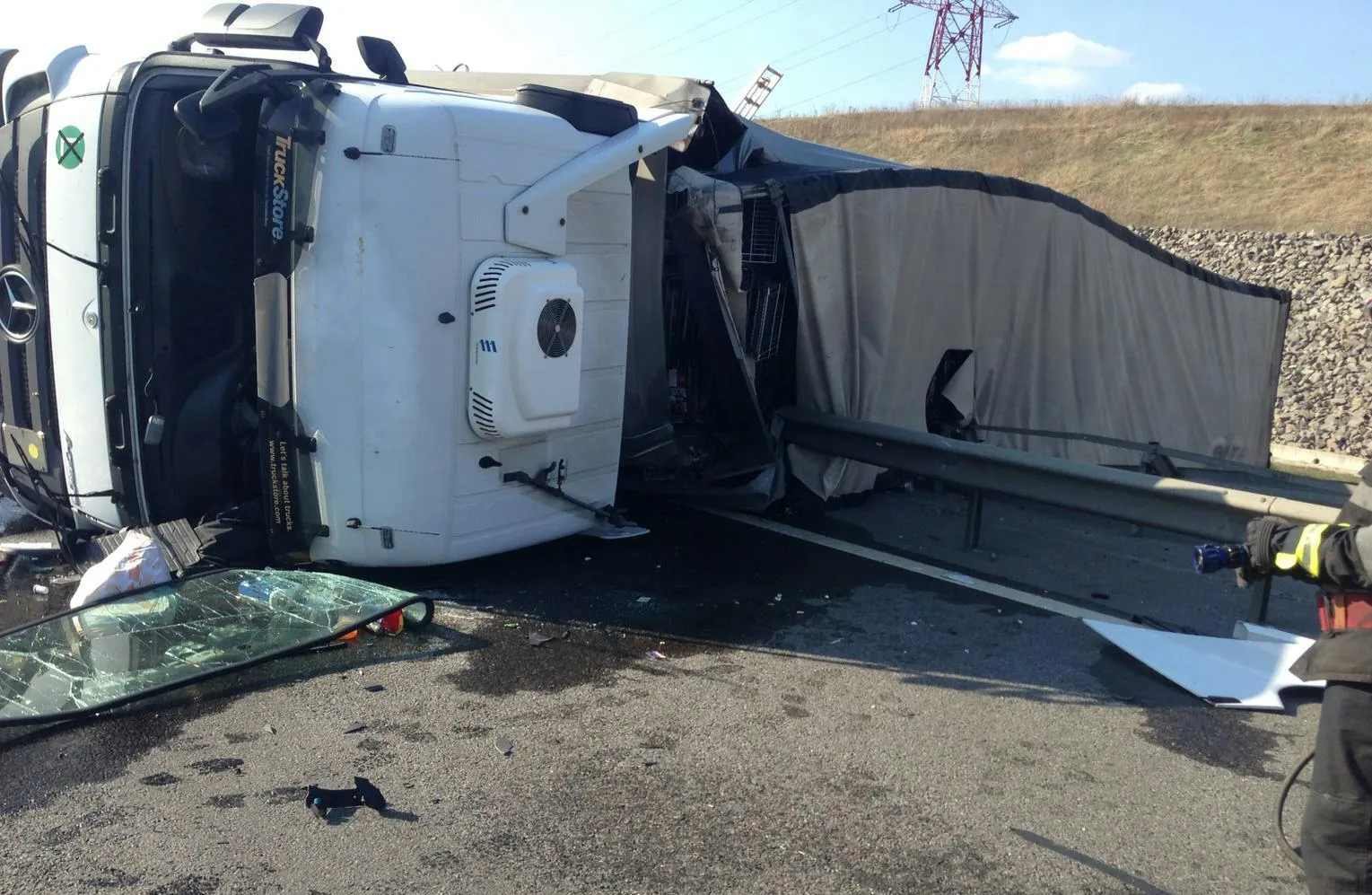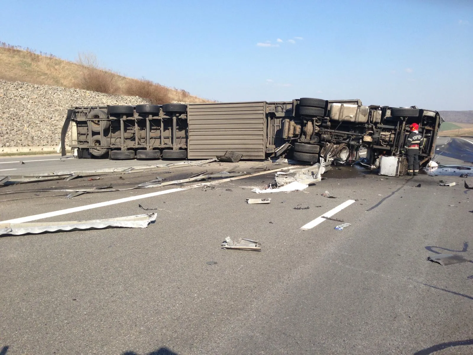 "La data de 4 aprilie a.c., în jurul orei 16.45, conducătorul unui ansamblu de vehicule, de 43 de ani, din comuna Deda, județul Mureș, în timp ce se deplasa pe autostrada A3 din direcția Gilău spre Turda, pe fondul altor preocupări a pierdut controlul direcției de mers și s-a răsturnat, pătrunzând pe sensul opus, provocând avarierea parapeților despărțitori", informează IPJ Cluj.
