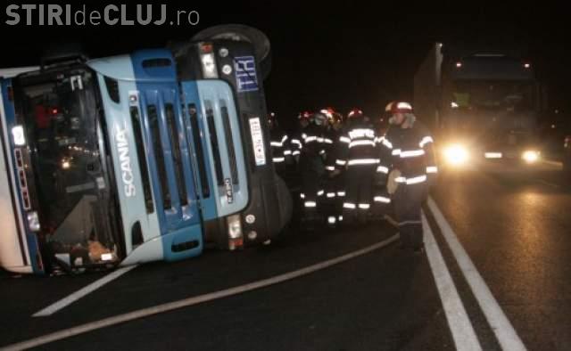 Un TIR s-a răsturnat, vineri seara, în jurul orei 21.00, la ieșire din Turda spre Alba.