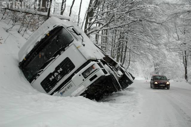 Un TIR condus de un cetățean turc s-a răsturnat pe marginea Drumului național 1J, în cursul dimineții de joi, 21 ianuarie.